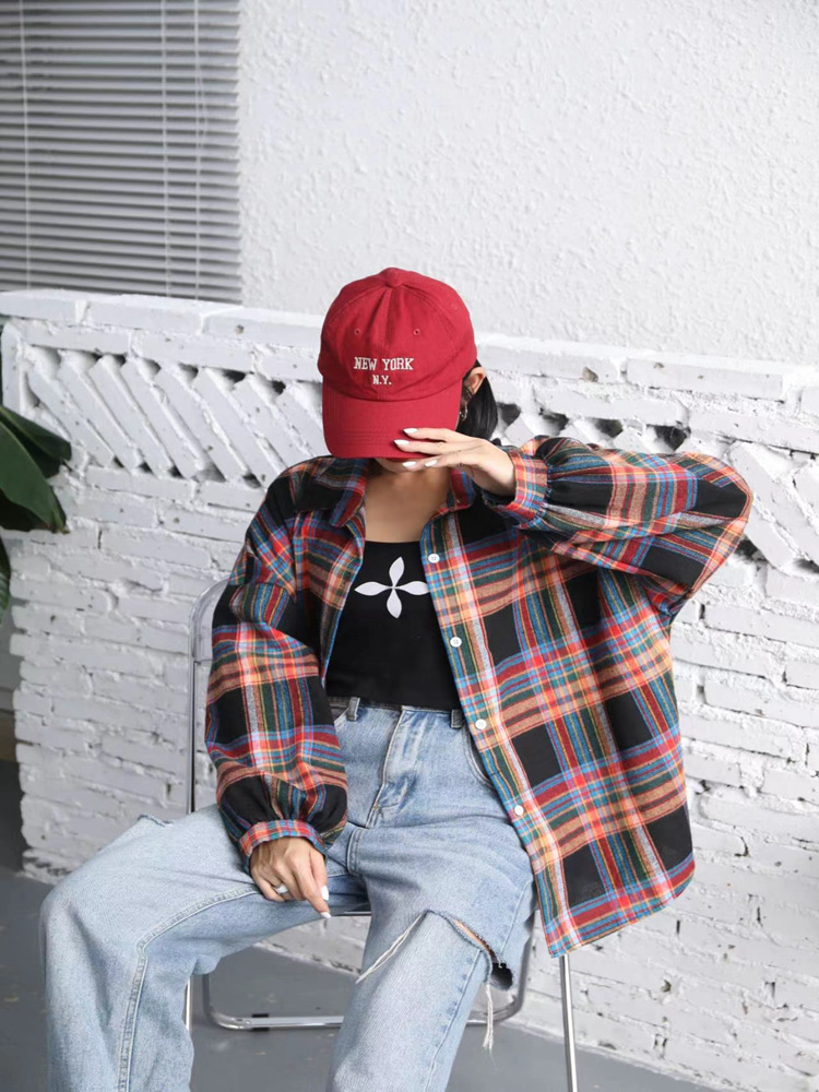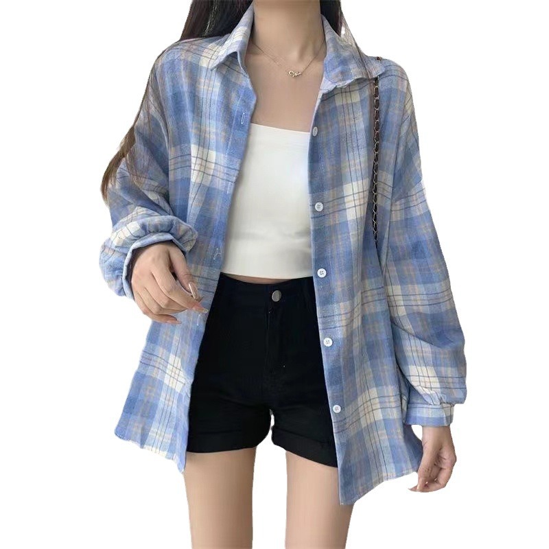 Главная страница > Новинка 2024, женская клетчатая рубашка с длинными рукавами, свободная модная куртка средней длины, толстовка, осенний кардиган, женский топ