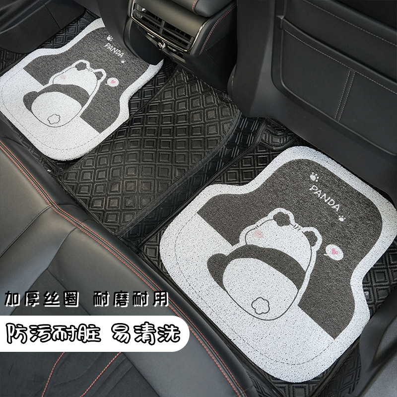 Автомобильный коврик с мультяшной спинкой и пандой, милый автомобильный коврик для ног, шелковое кольцо, износостойкий, грязеотталкивающий, легкий в уходе, автомобильный коврик