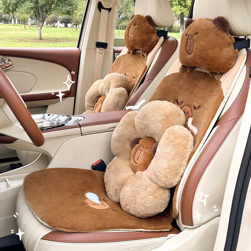 Главная страница > Мультяшная накидка на автомобильное сиденье, креативный нескользящий чехол для сиденья в виде капибары, высококачественная зимняя теплая подушка для автомобильного сиденья