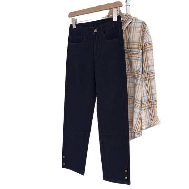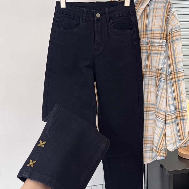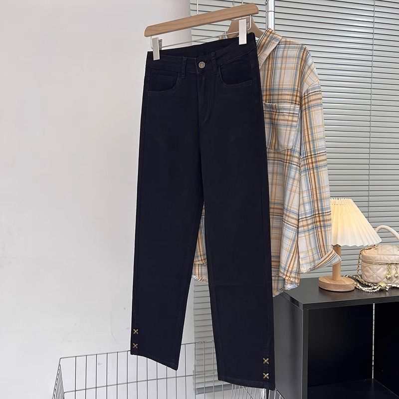 Главная страница > Большие размеры черные прямые джинсы женские весной 2025 новый тонкий толстый мм эластичные штаны с девятью очками