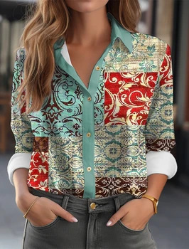 Внешняя торговля Трансграничные 2024 Европейские и американские женские кардиганы 3D цветочные принты рубашки с длинными рукавами женские высокие чувства дикий топ