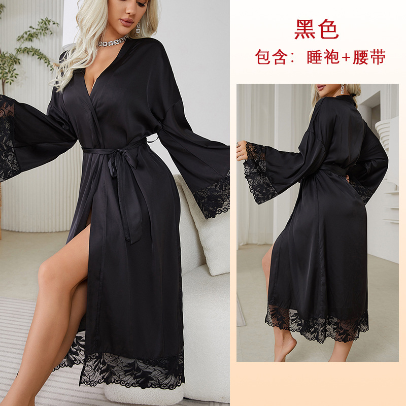 Главная страница > Европейский и американский женский атласный халат, длинная кружевная сексуальная комфортная ночная рубашка, французская домашняя одежда на шнуровке 682