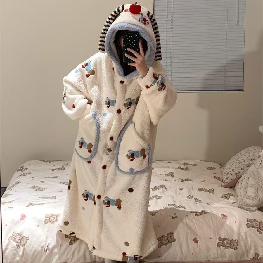 Главная страница > [Колбаса щенок] Коралловый бархат с капюшоном женский зимний толстый теплый фланелевый набор домашней одежды