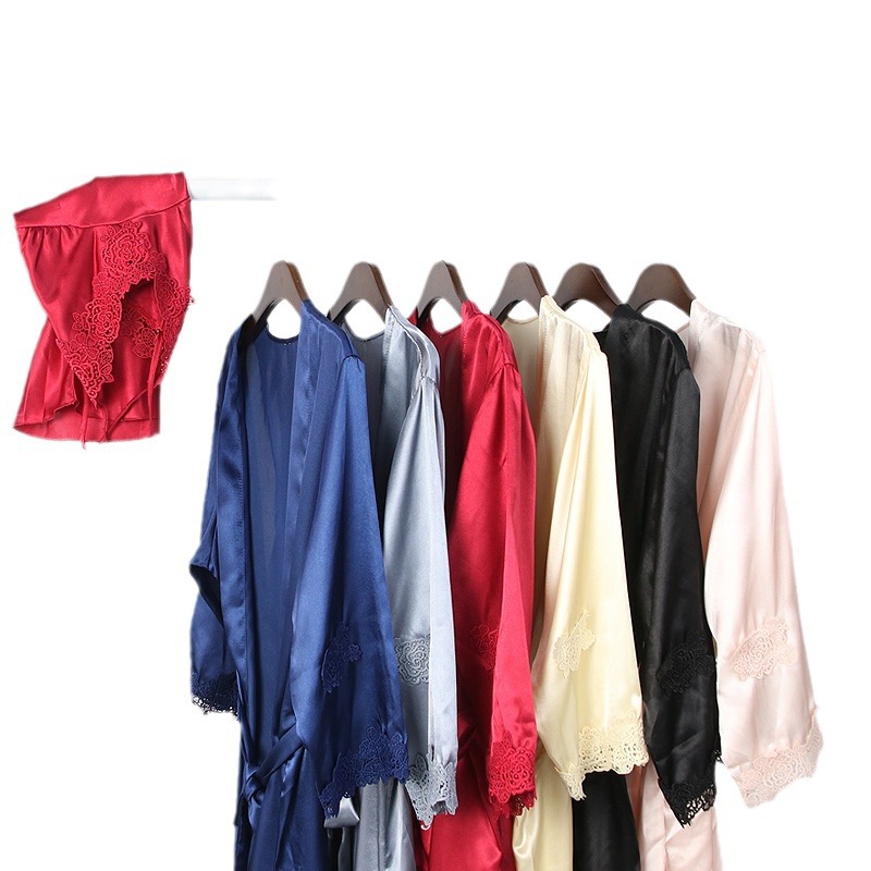 Главная страница > Пижама Han Meiren с подкладкой для груди, Женская весенне-Летняя Сексуальная Шелковая пижама, комплект из пяти предметов, шорты-слинги, ночная рубашка, ночная рубашка