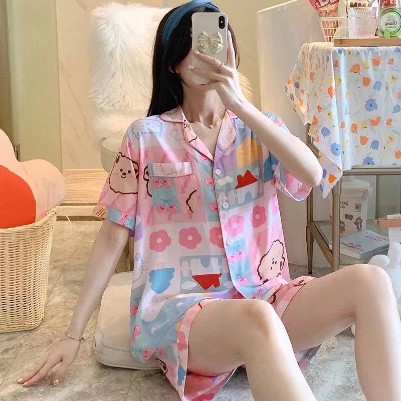 Главная страница > Пижама женская летняя Милая мелок Синь новый свежий студенческий мультфильм с короткими рукавами Кардиган Верхняя одежда летняя Домашняя одежда костюм
