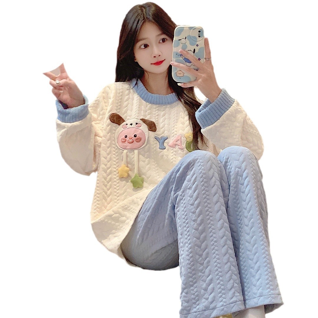 Главная страница > Pajamas Весна и Осень Зима с толстым нагрудным ковриком через границу оптовая милая девушка с длинными рукавами пижамы женский костюм набор