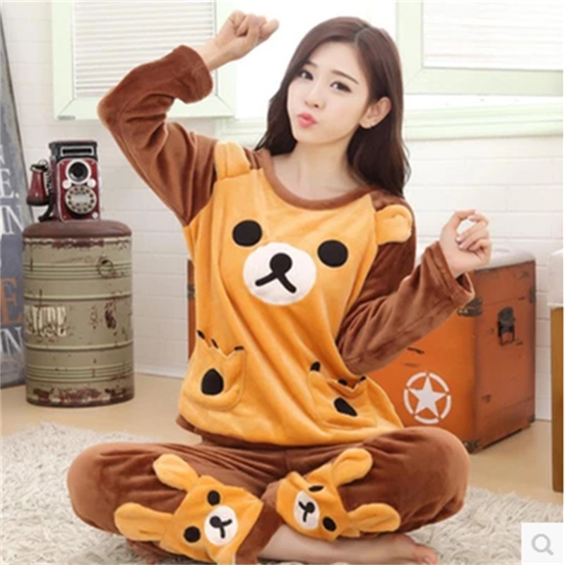 Главная страница > Женская пижама Cracker Bear, осенне-зимняя Коралловая флисовая Новинка на флисовой подкладке, утолщенная фланелевая живая домашняя одежда для студентов с героями мультфильмов