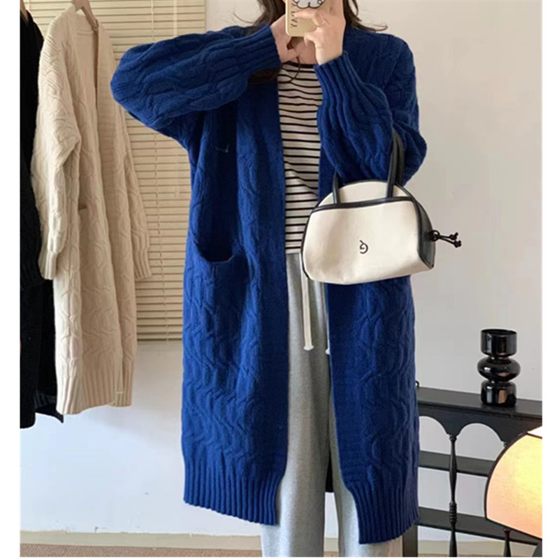 Главная страница > Однотонный витой ленивый длинный свитер в Корейском стиле с V-образным вырезом, модный элегантный нежный стиль, мягкий клейкий Женский вязаный кардиган