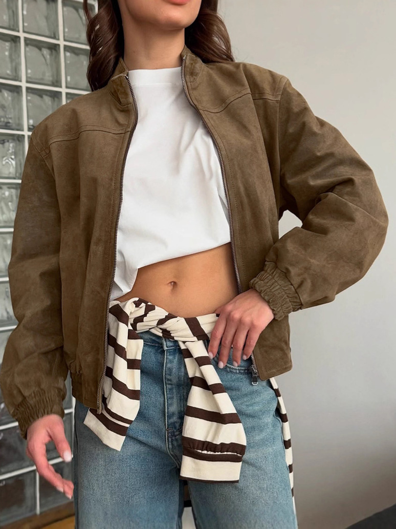 Главная страница > Amazon 2025 Европейская и американская персонализированная уличная куртка с длинными рукавами и воротником-стойкой, теплая женская осенне-зимняя замшевая куртка в стиле ретро