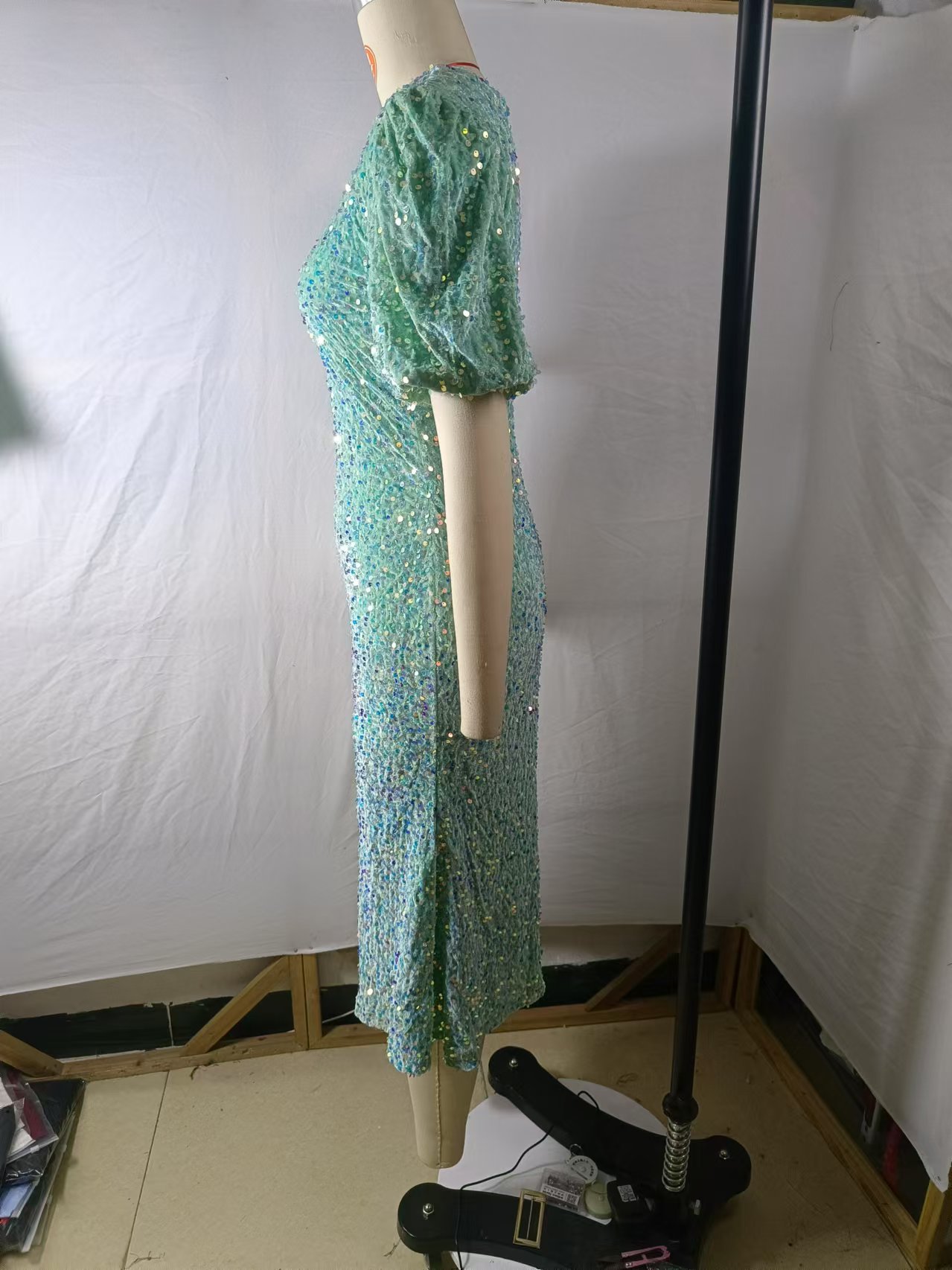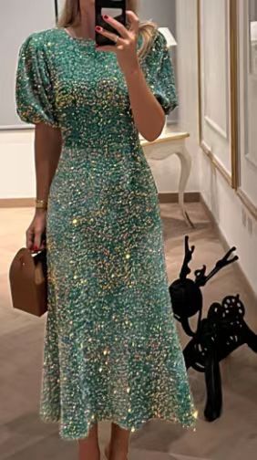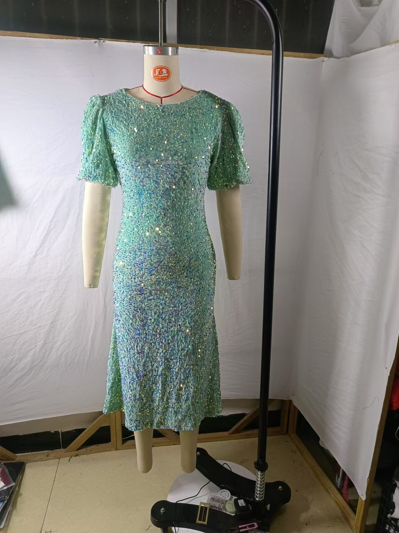 Главная страница > Независимая станция 2024 Новое легкое роскошное темпераментное платье в Корейском стиле тяжелая промышленность блестящее платье с коротким рукавом