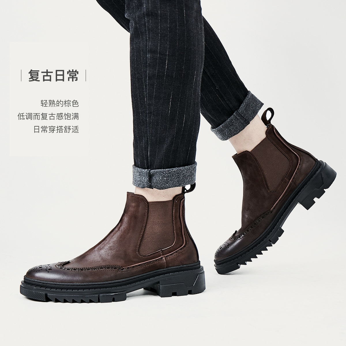 Главная страница > Челси сапоги кожаные сапоги Martin сапоги Буллок резные кожаные сапоги с бархатом на толстой подошве Британские ретро мужские сапоги