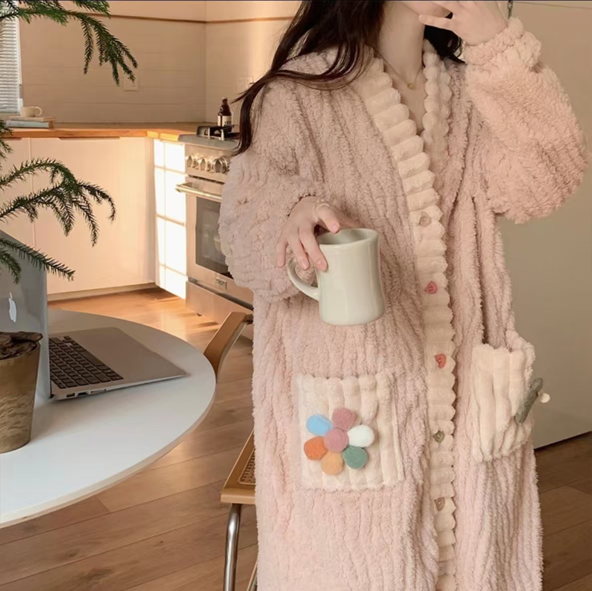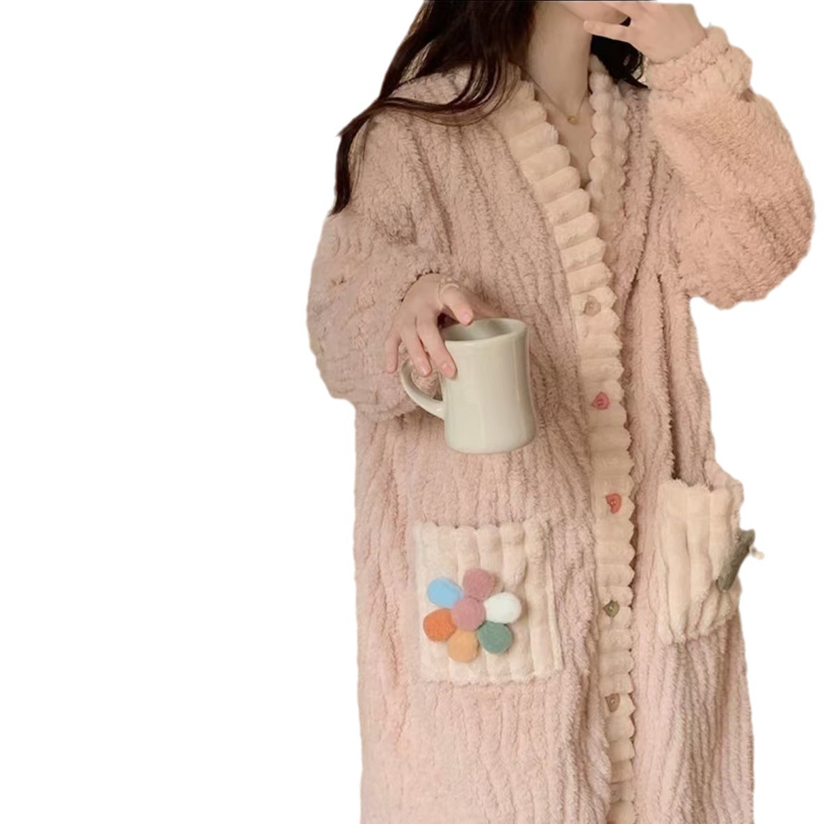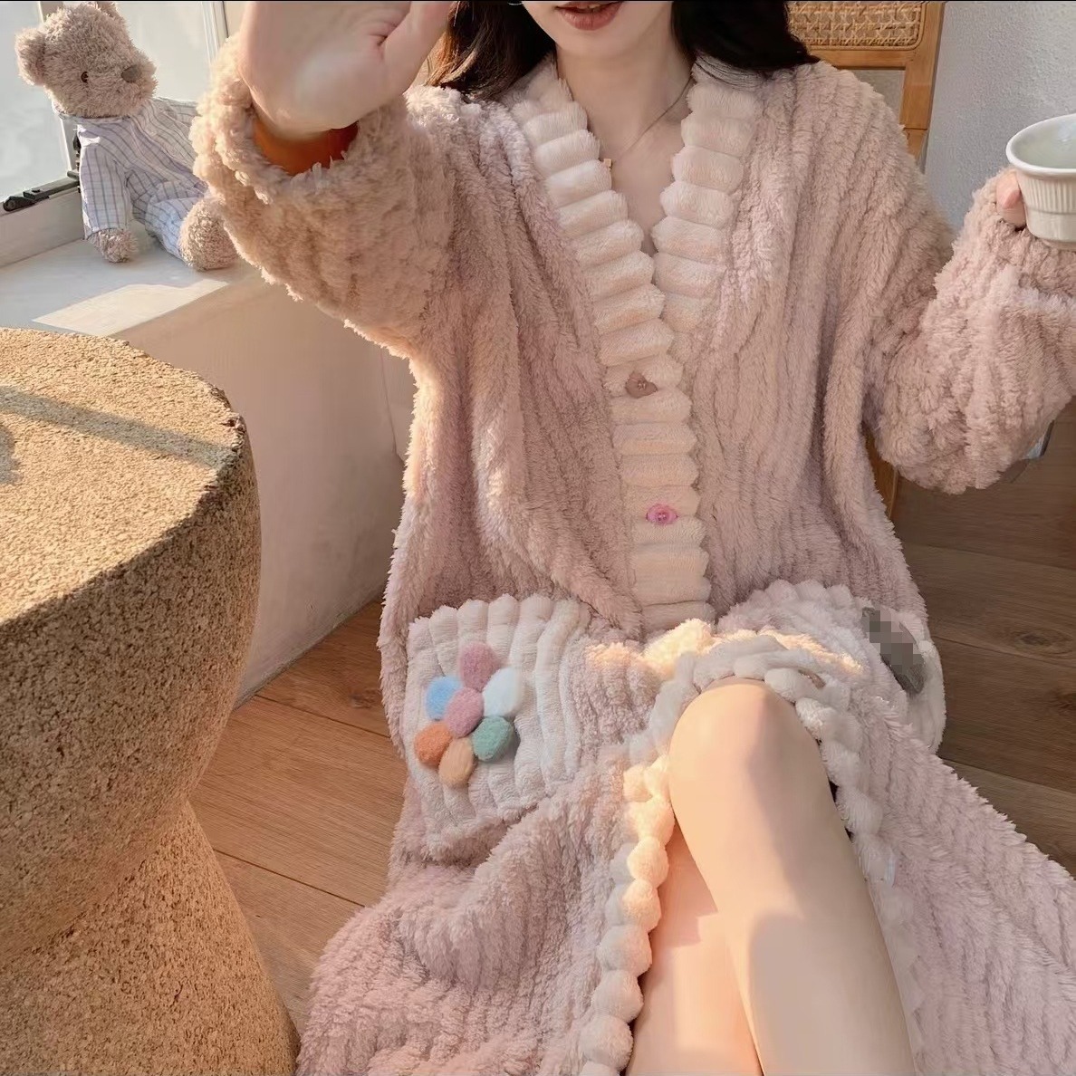 Главная страница > Фланелевая ночная рубашка для женщин на осень и зиму, утолщенная и теплая, в радужном стиле, домашняя одежда, длинная модель, большой размер, пижама из сладкого кораллового вельвета.