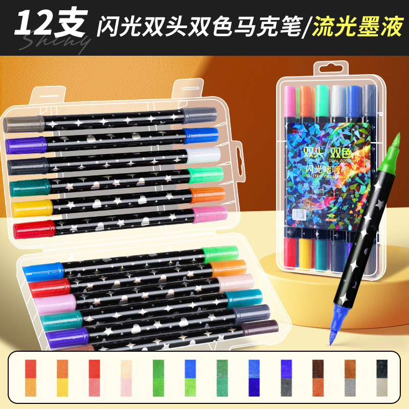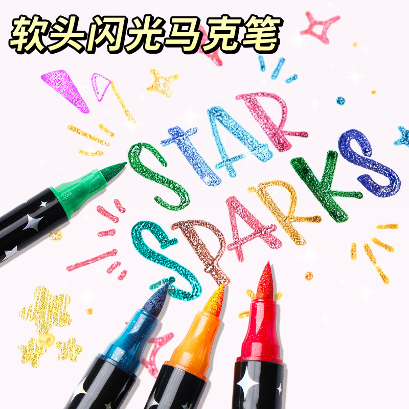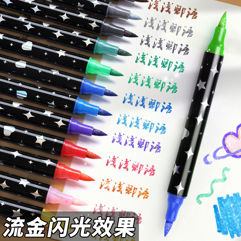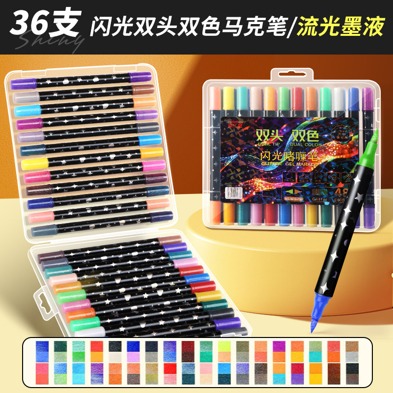 Главная страница > Детский двусторонний акриловый блестящий маркер, двусторонний металлический 24 цветных гелевых кисти с мягкой головкой для ручной росписи для учащихся начальной школы
