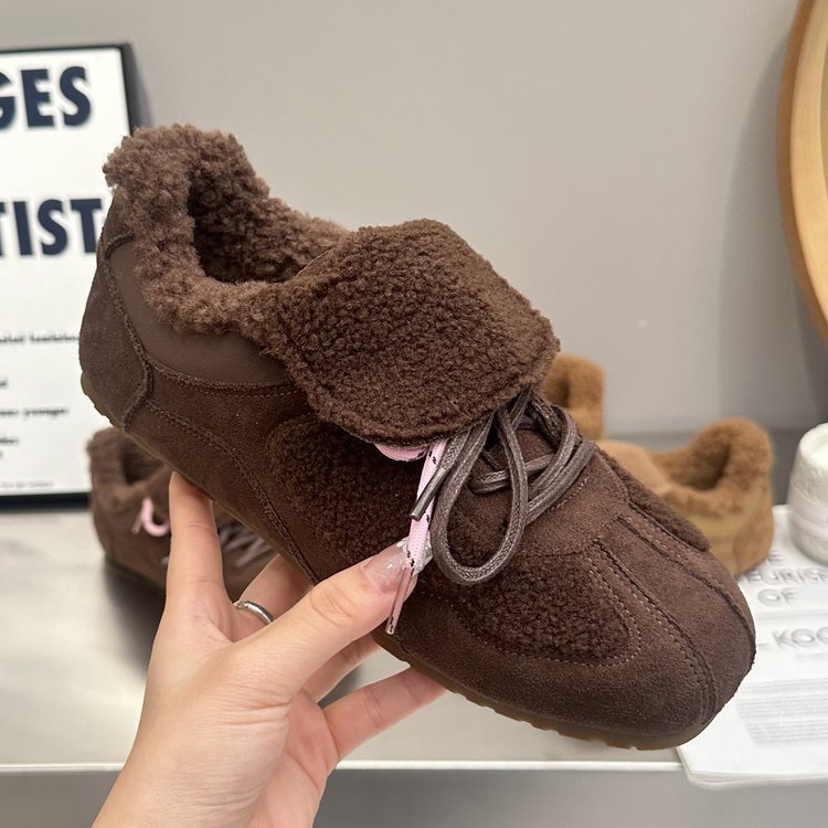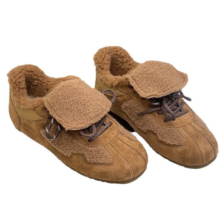 Плюс бархат теплая раскладушка немецкая тренировка обувь женская 2024 новая зимняя хлопчатобумажная обувь, увеличенная шерстяная обувь ретро повседневная обувь