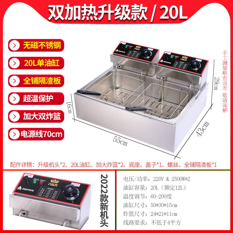 20 л двойной нагрев/флагманский/защита от перегрева/двойная большая корзина для жарки, разделительная плата полного двухъярусного шлака