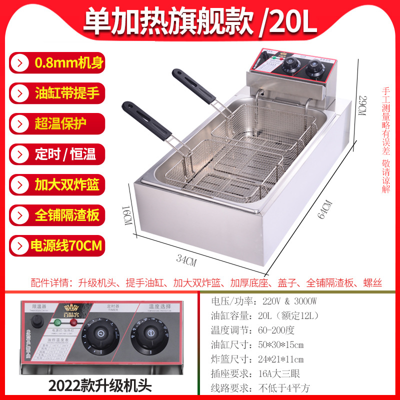 20 л одиночный нагрев/флагманский/защита от перегрева/двойная большая корзина для жарки, таймер/ручка/большой сепаратор шлака