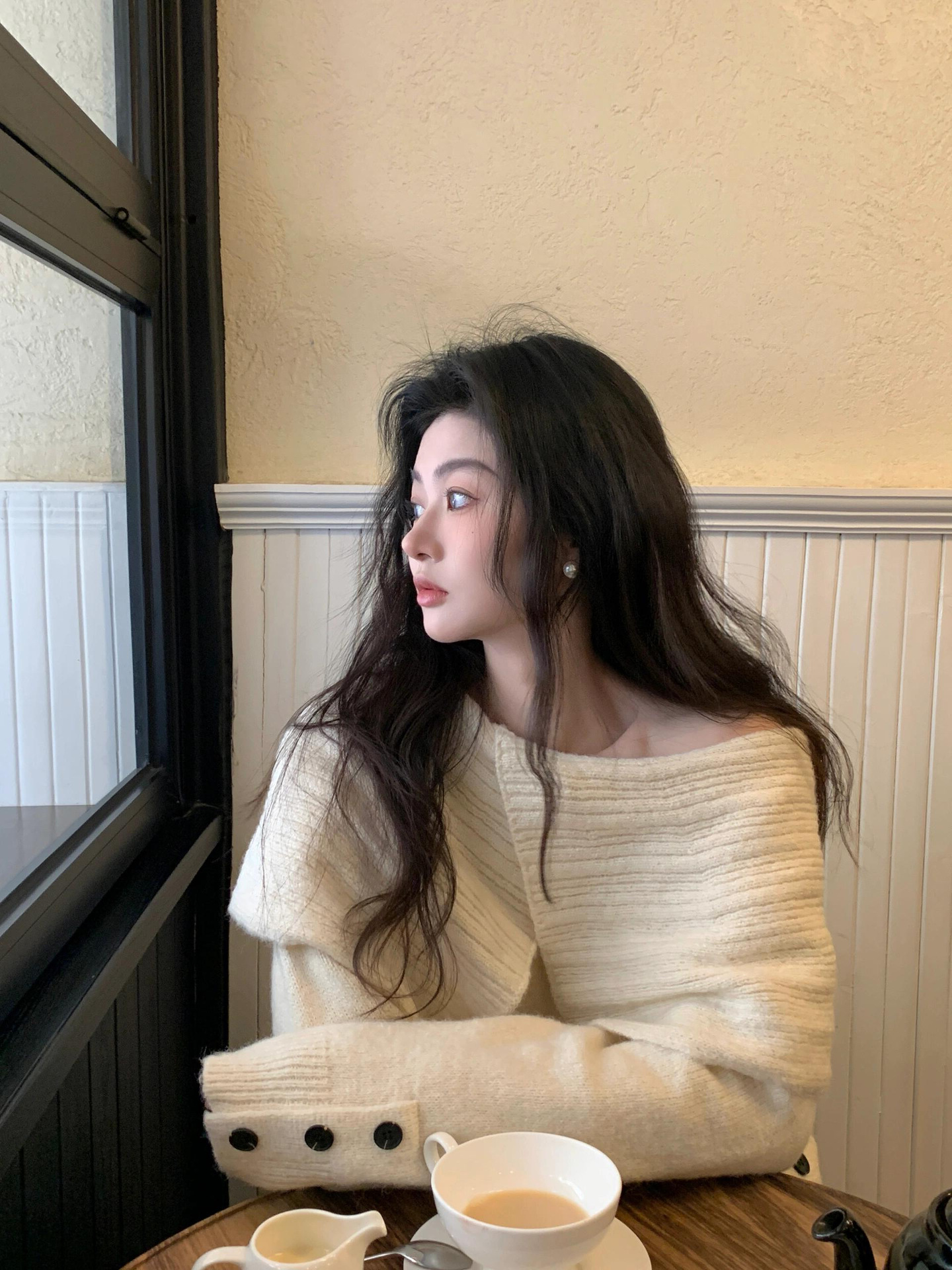 Главная страница > Ретро дизайн чувство с воротником трикотажный свитер осень и зима 2024 новый темперамент