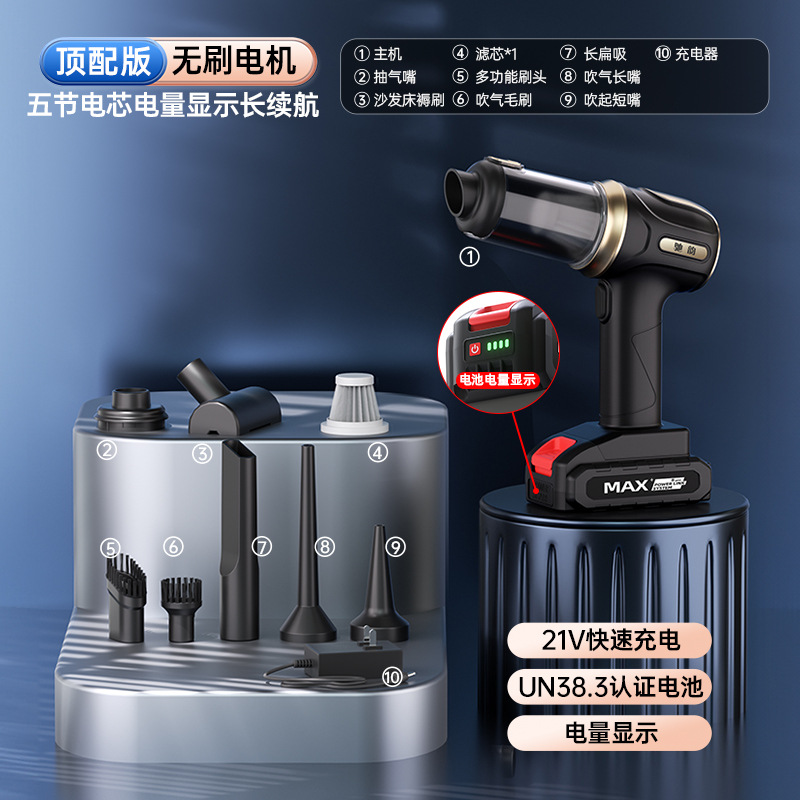 Бесщеточный двигатель B3, мощность всасывания 21000 Па, 10 батарей + сумка для хранения удлинительной трубки + дисплей мощности