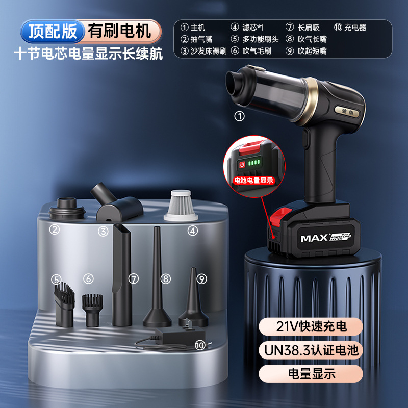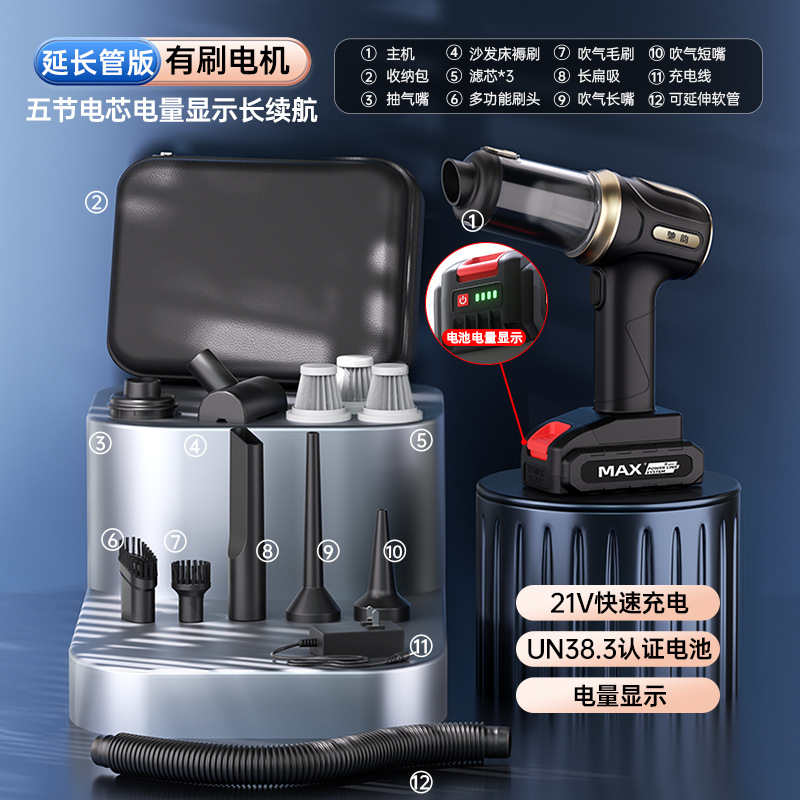 Мотор с щеткой B3, мощность всасывания 11000 Па, 10 батарей + сумка для хранения удлинительной трубки + дисплей мощности