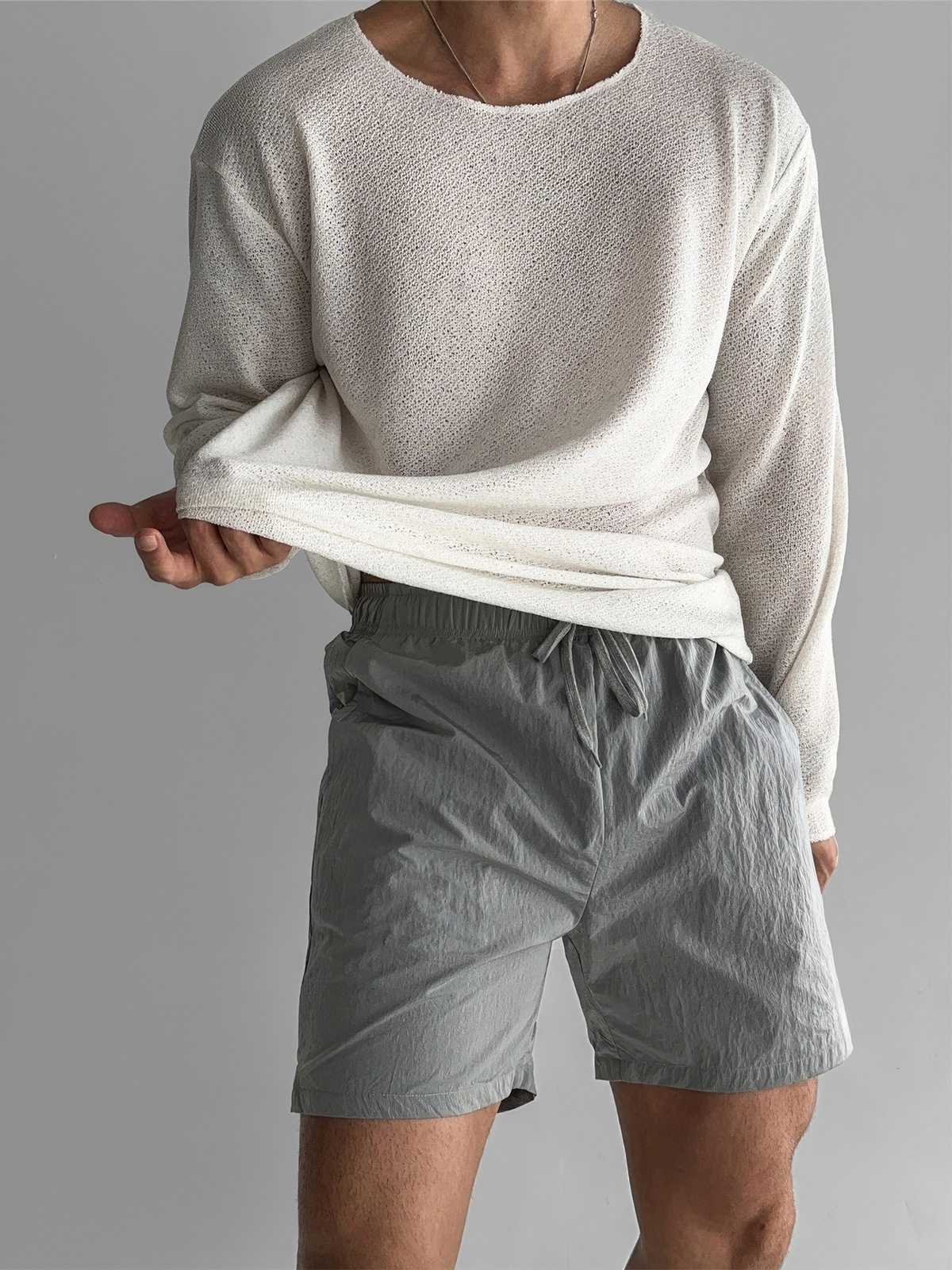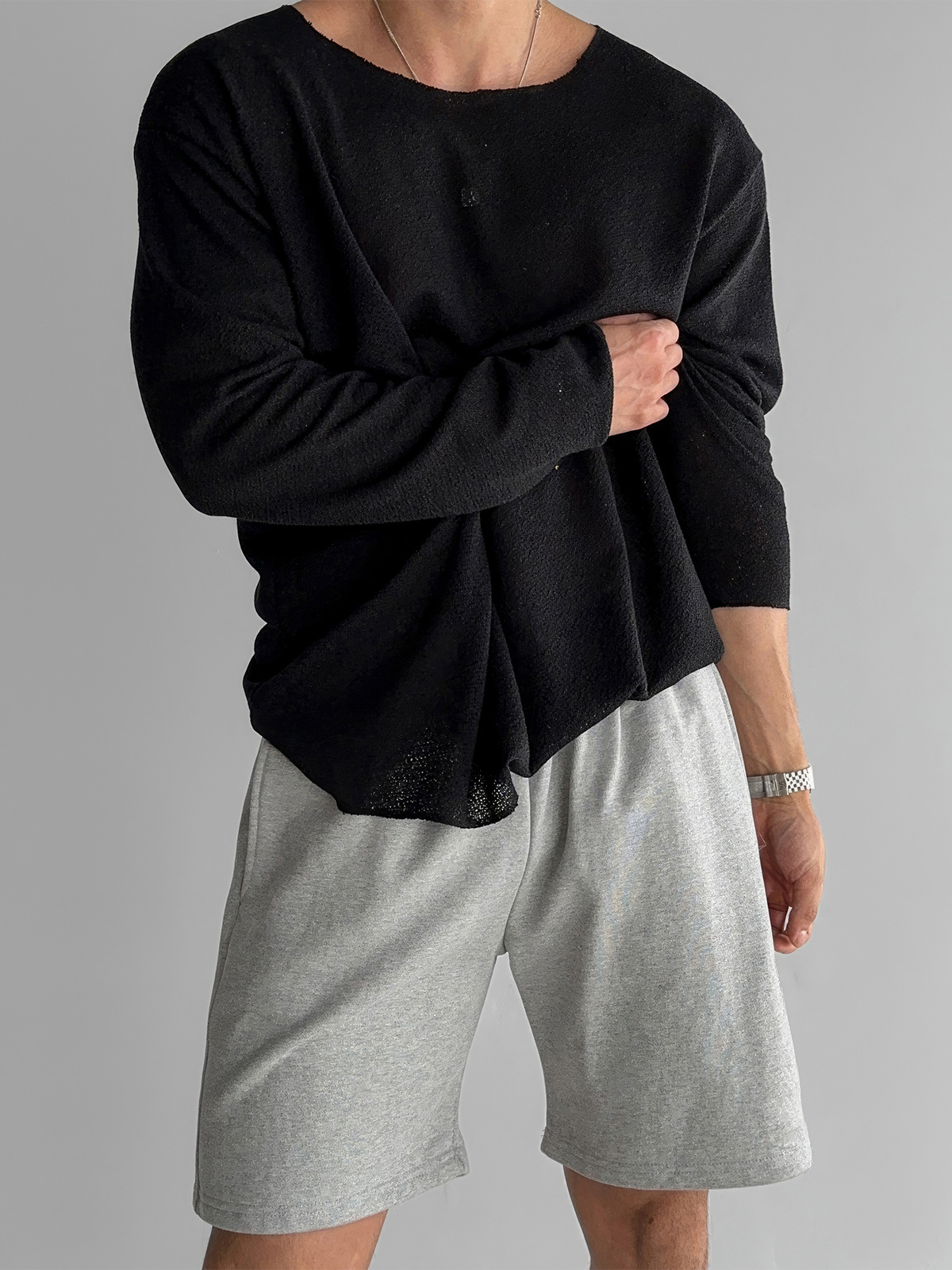 Главная страница > Ленивый ветер полый трикотажный костюм мужской шелковистый и шелковистый, рыхлый большой воротник, длинный рукав солнцезащитный крем, расслабляющий рубашка с низким воротником