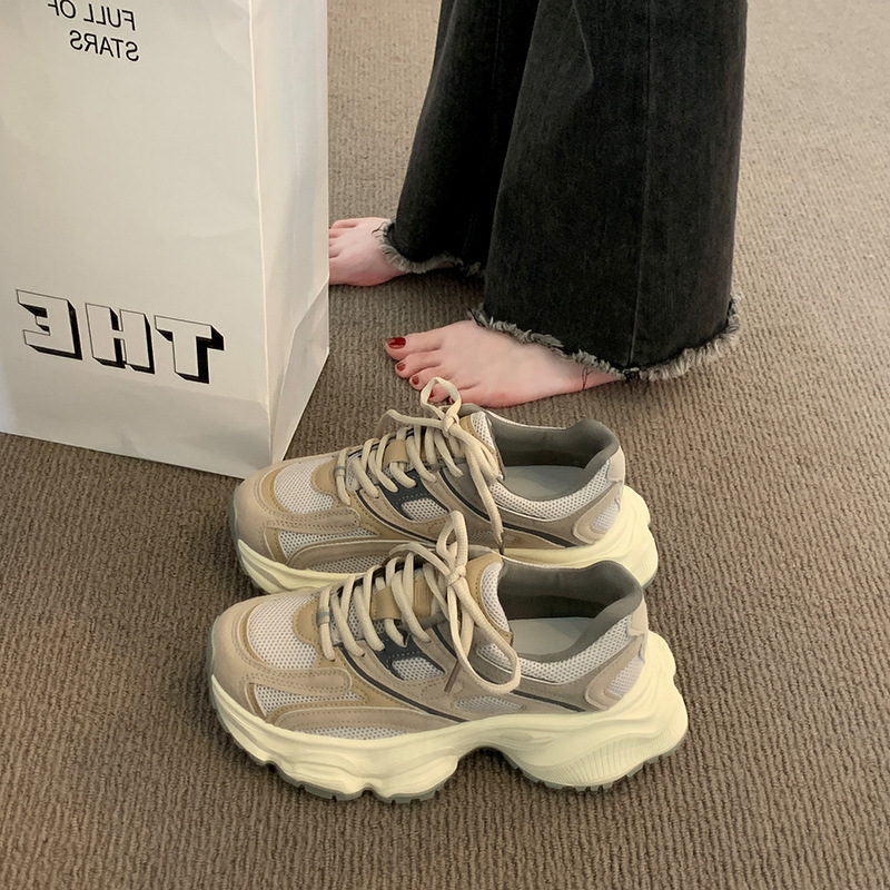 Главная страница > Серые женские туфли для папы на толстой подошве в стиле ретро, новинка лета 2024, дышащая сетчатая маленькая повседневная спортивная обувь, демонстрирующая ногу