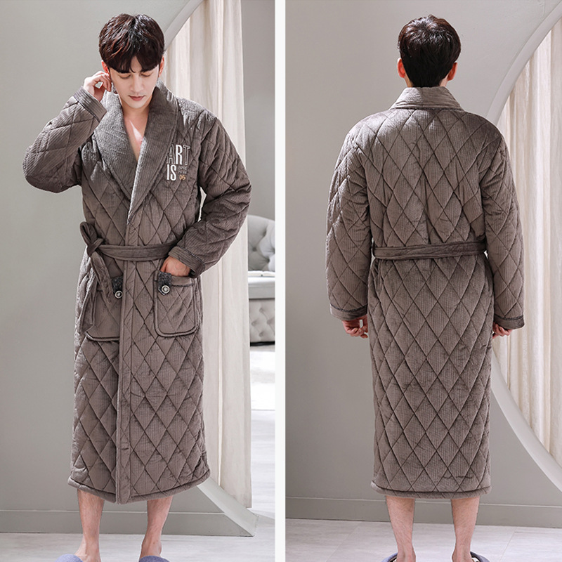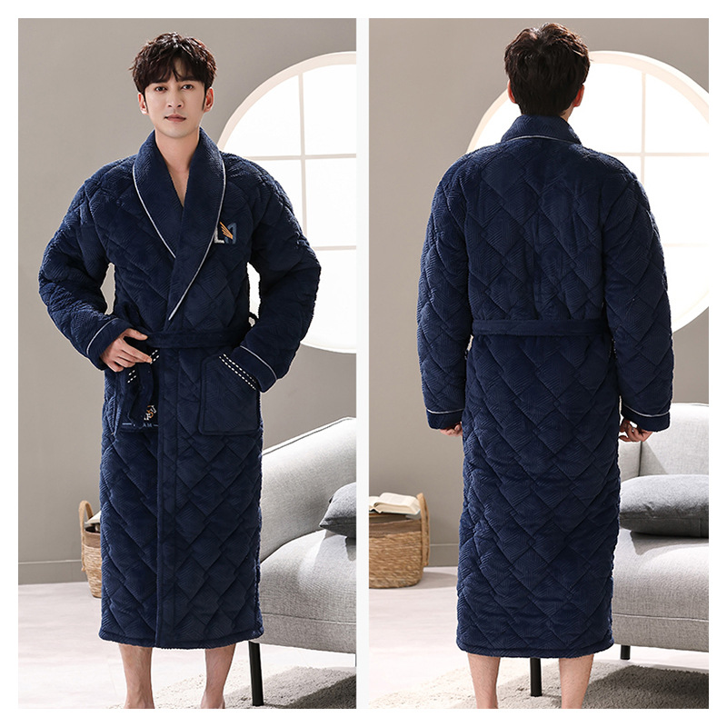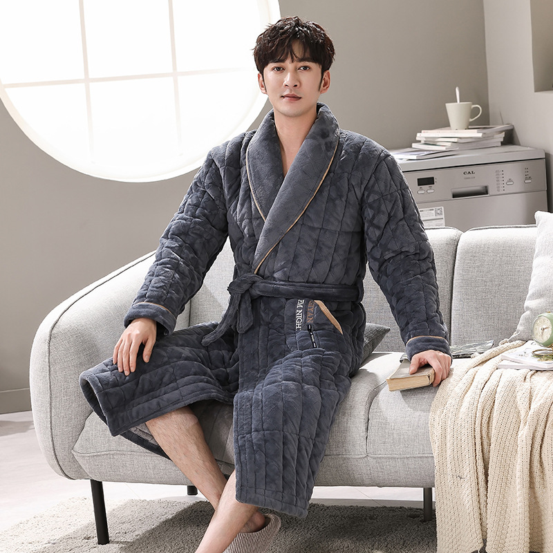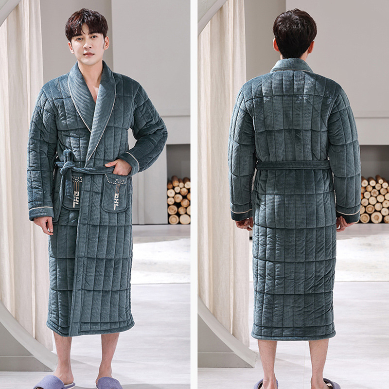 Главная страница > Мужской зимний утолщенный трехслойный стеганый Халат средней длины, теплый осенне-зимний коралловый флис, мужской халат, домашняя одежда