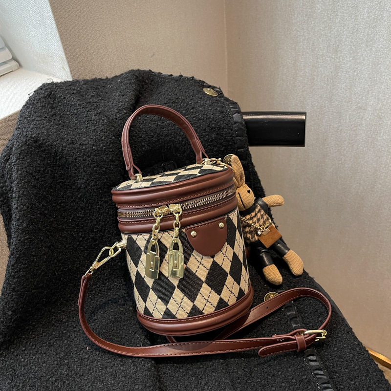 Главная страница > Женская сумка цилиндрической формы, новинка 2025 года, модная нишевая ретро-сумка высокого качества, стеганая диагональная сумка-ведро через плечо