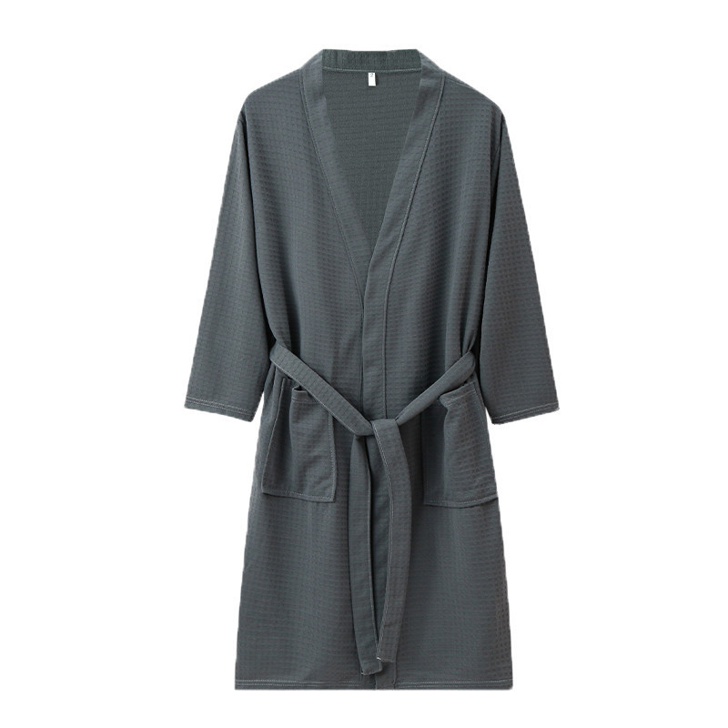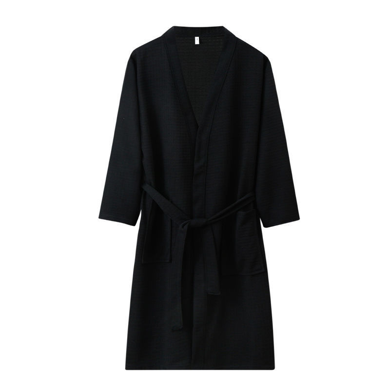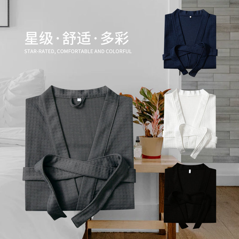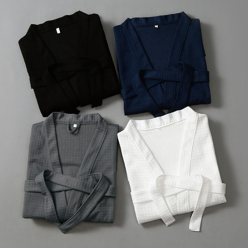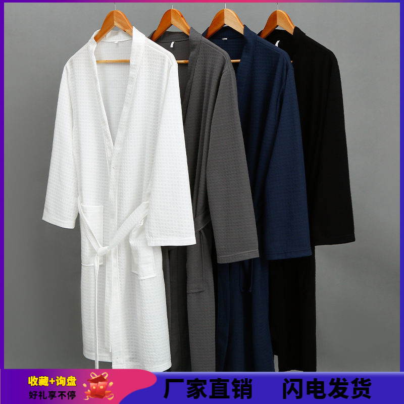 Пятизвездочный халат для отеля, однотонный хлопковый впитывающий вафельный весенне-осенний ночной халат для пар, женский ночной халат средней длины с длинными рукавами, большой размер
