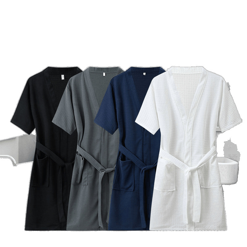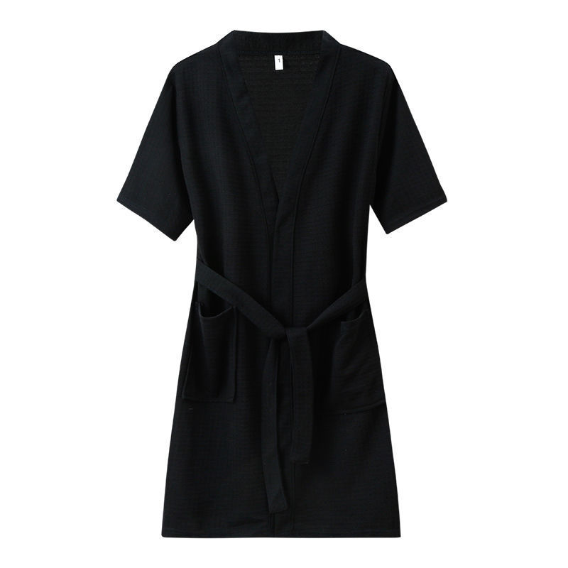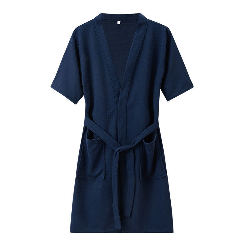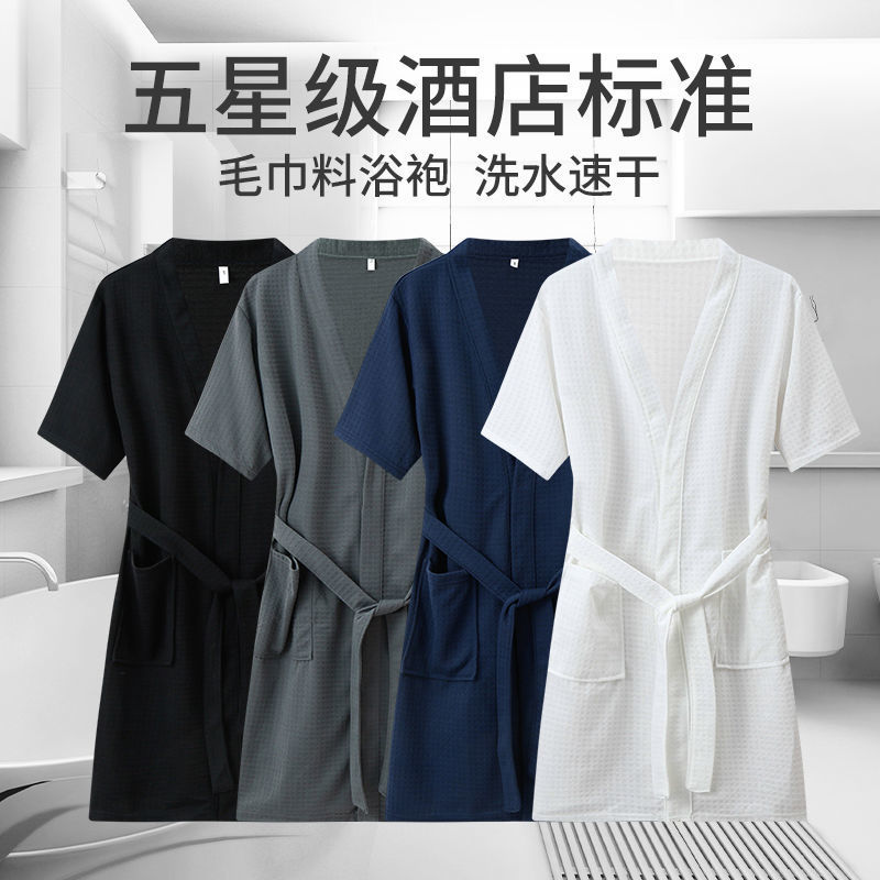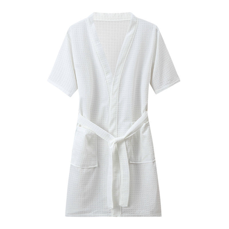 Пятизвездочный халат для отеля, однотонный хлопковый впитывающий вафельный весенне-осенний ночной халат для пар, женский ночной халат средней длины с длинными рукавами, большой размер