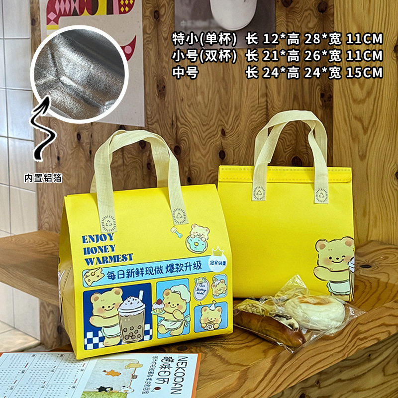 Главная страница > Изолированная сумка-холодильник из нетканого материала для выпечки, молочного чая, торта, кофе, подарков и сувениров
