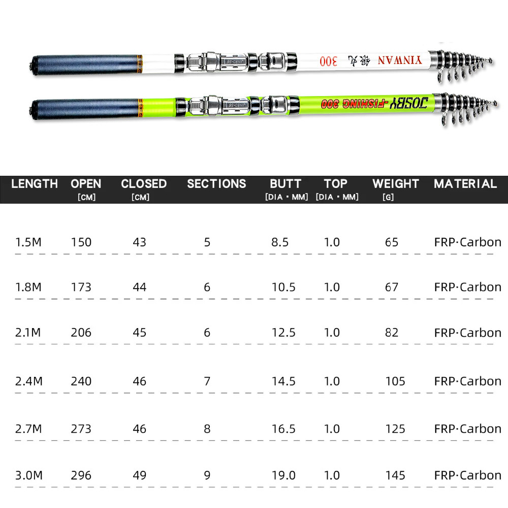 JOSBY сверхлегкая портативная телескопическая удочка из углеродного волокна, вращающееся колесо, морская вода, пресноводная удочка 1,5 м-3,0 м
