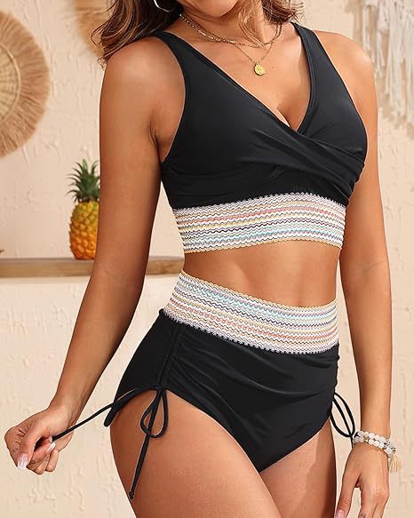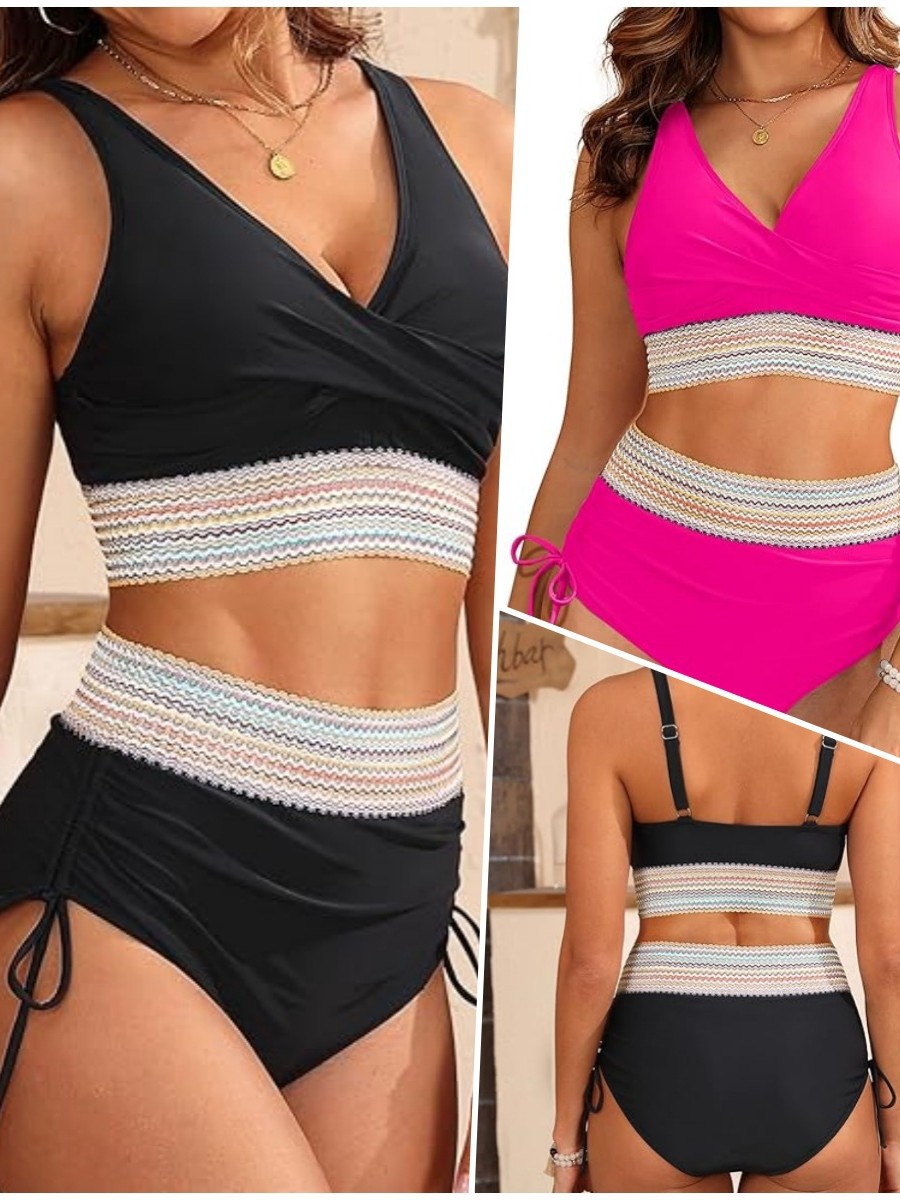 2025 внешняя торговля AliExpress европейский и американский раздельный купальник больших размеров на шнурке Amazon сексуальный женский купальник с высокой талией и повязкой через границу
