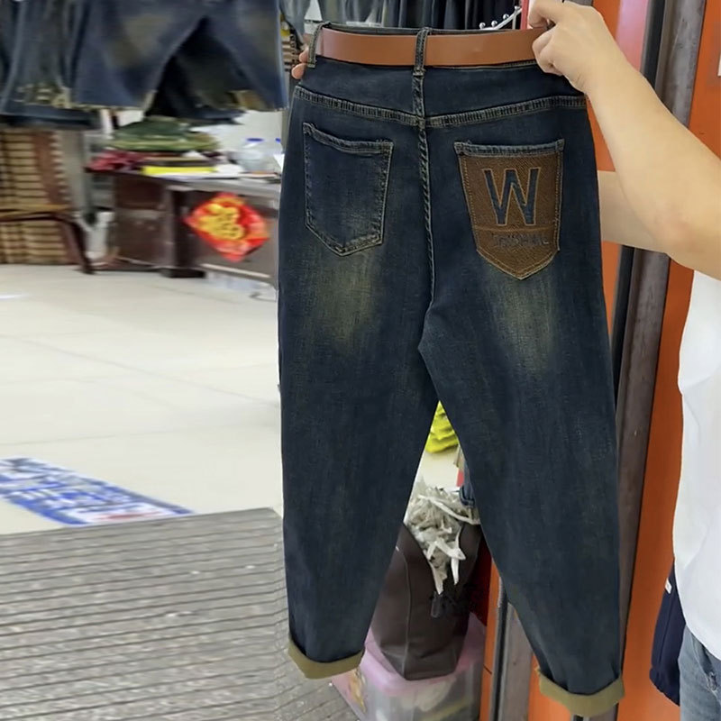 Главная страница > Женские джинсы Harlan с высокой талией, контрастные брюки с редиской, большие размеры, укороченные эластичные брюки в форме груши для девочек