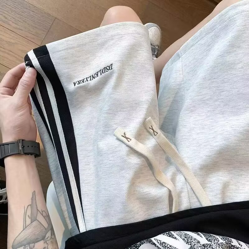 Главная страница > Летние модные брендовые шорты с американскими буквами для студентов-мужчин, полосатые пляжные шорты с цветными блоками, повседневные спортивные шорты до колена в гонконгском стиле