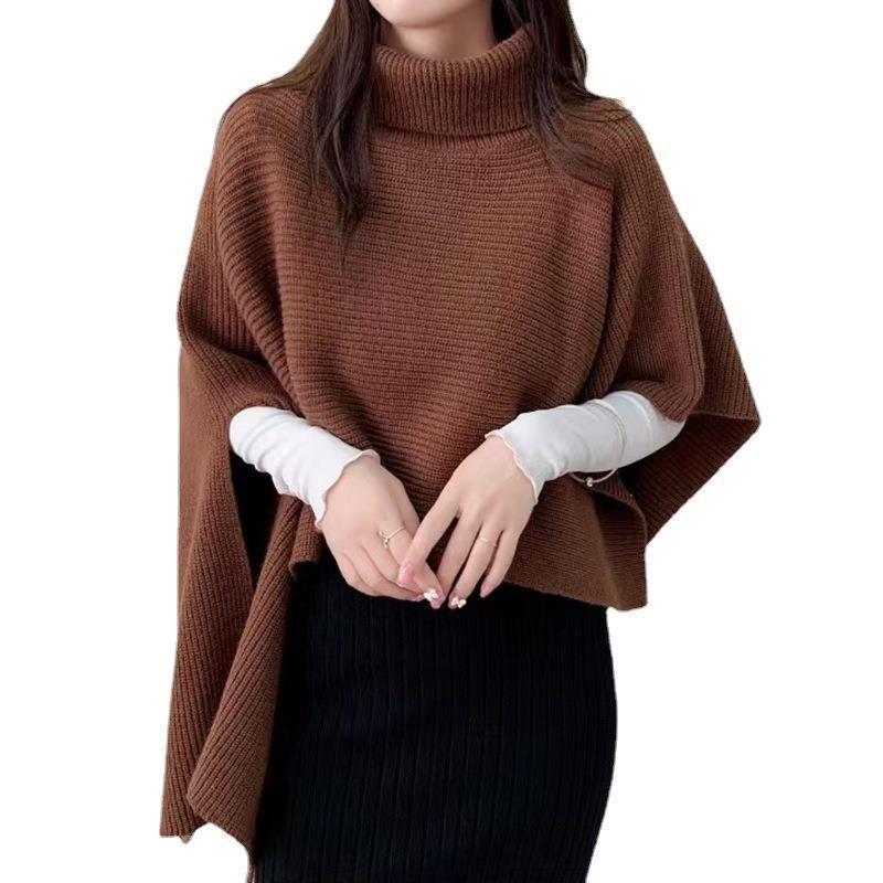 Главная страница > Южная Корея Dongdaemun 2023 Новый Зимний вязаный плащ асимметричного кроя с высоким воротником, повседневный теплый шаль, женская мода