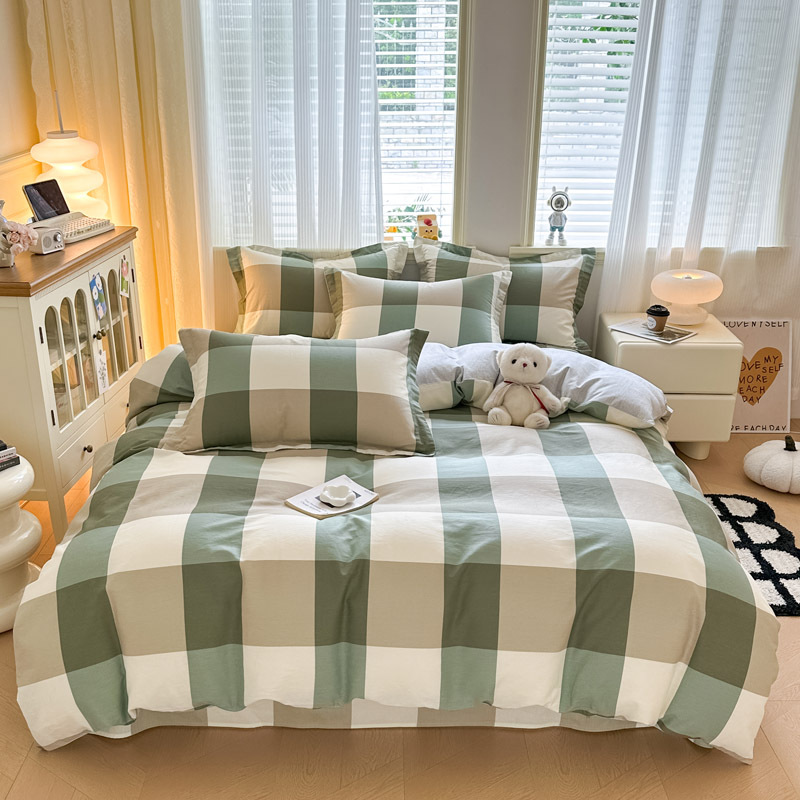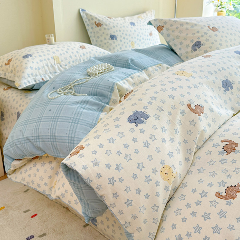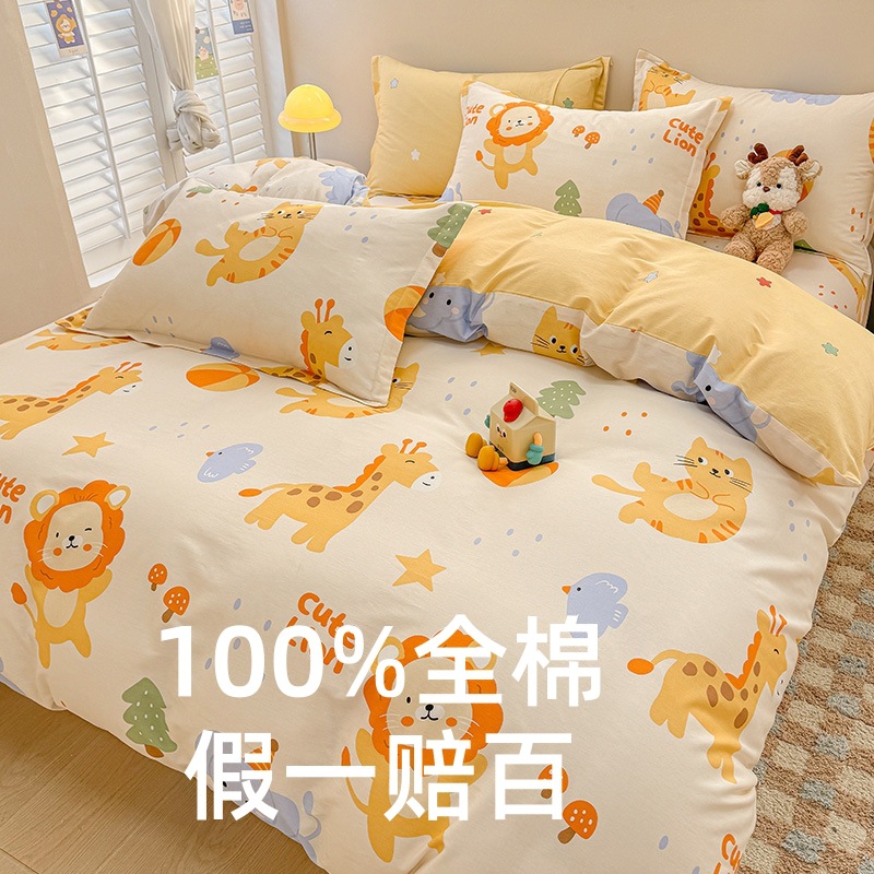 Главная страница > Свежий и простой комплект постельного белья в стиле инс из 100% хлопка, 4 предмета: простыня с мультяшным рисунком, пододеяльник, натяжная простыня, студенческий комплект из 3 предметов.
