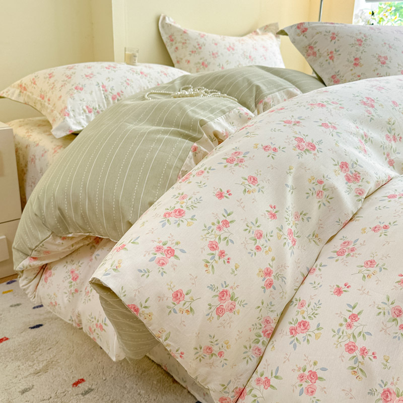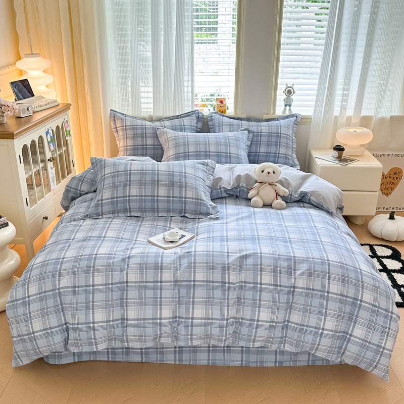 Свежий и простой комплект постельного белья в стиле инс из 100% хлопка, 4 предмета: простыня с мультяшным рисунком, пододеяльник, натяжная простыня, студенческий комплект из 3 предметов.