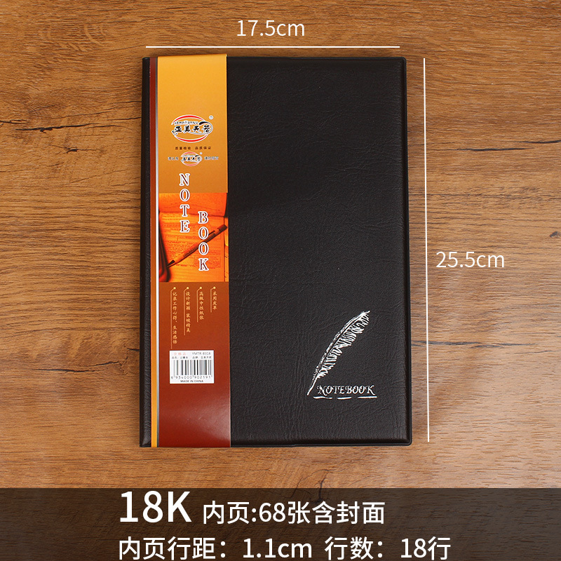 Черный кожаный бизнес-блокнот Простой офисный блокнот 18K25K32K36K48K60K100K Recorder