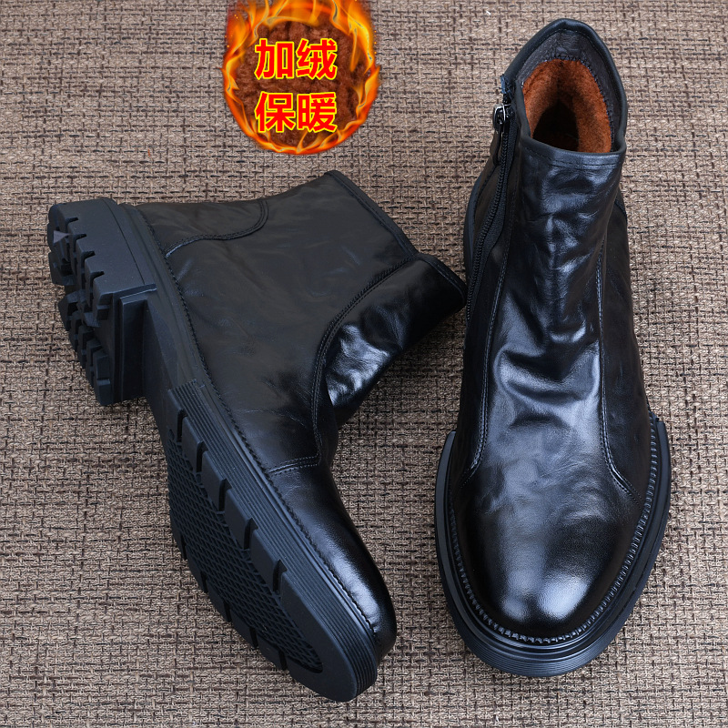 Главная страница > Мужские ботинки Мартин из натуральной кожи, осенние, полностью кожаные, в британском стиле, модные, высококачественные, деловые повседневные, с боковой молнией.