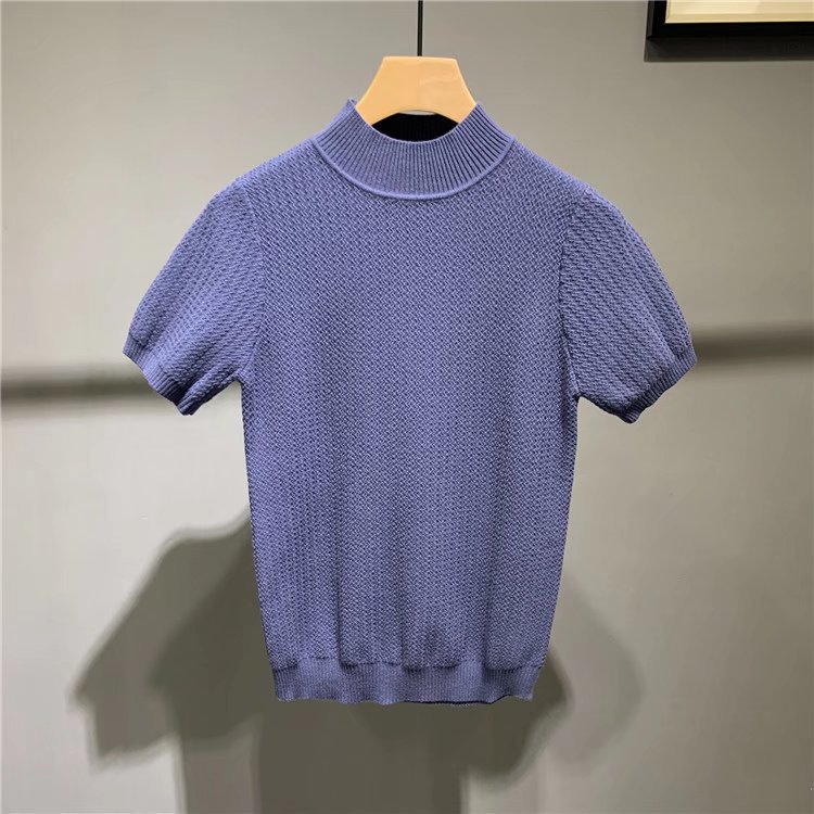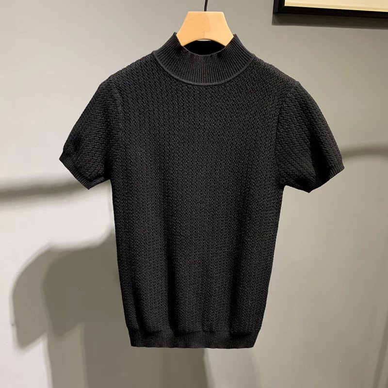 Главная страница > Осенняя новая облегающая мужская Трикотажная футболка с коротким рукавом в Корейском стиле, модная мужская полосатая рубашка со средним воротником, модная нижняя рубашка