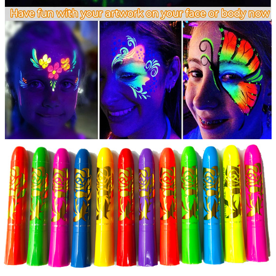 12-цветная светящаяся краска для лица, боди-арт, макияж для Хэллоуина, водорастворимые мелки, праздничный макияж, пигмент для трансграничной торговли