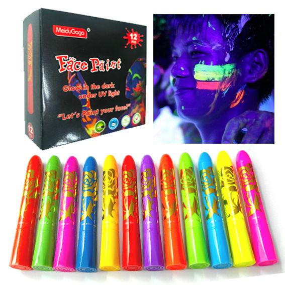 Главная страница > 12-цветная светящаяся краска для лица, боди-арт, макияж для Хэллоуина, водорастворимые мелки, праздничный макияж, пигмент для трансграничной торговли