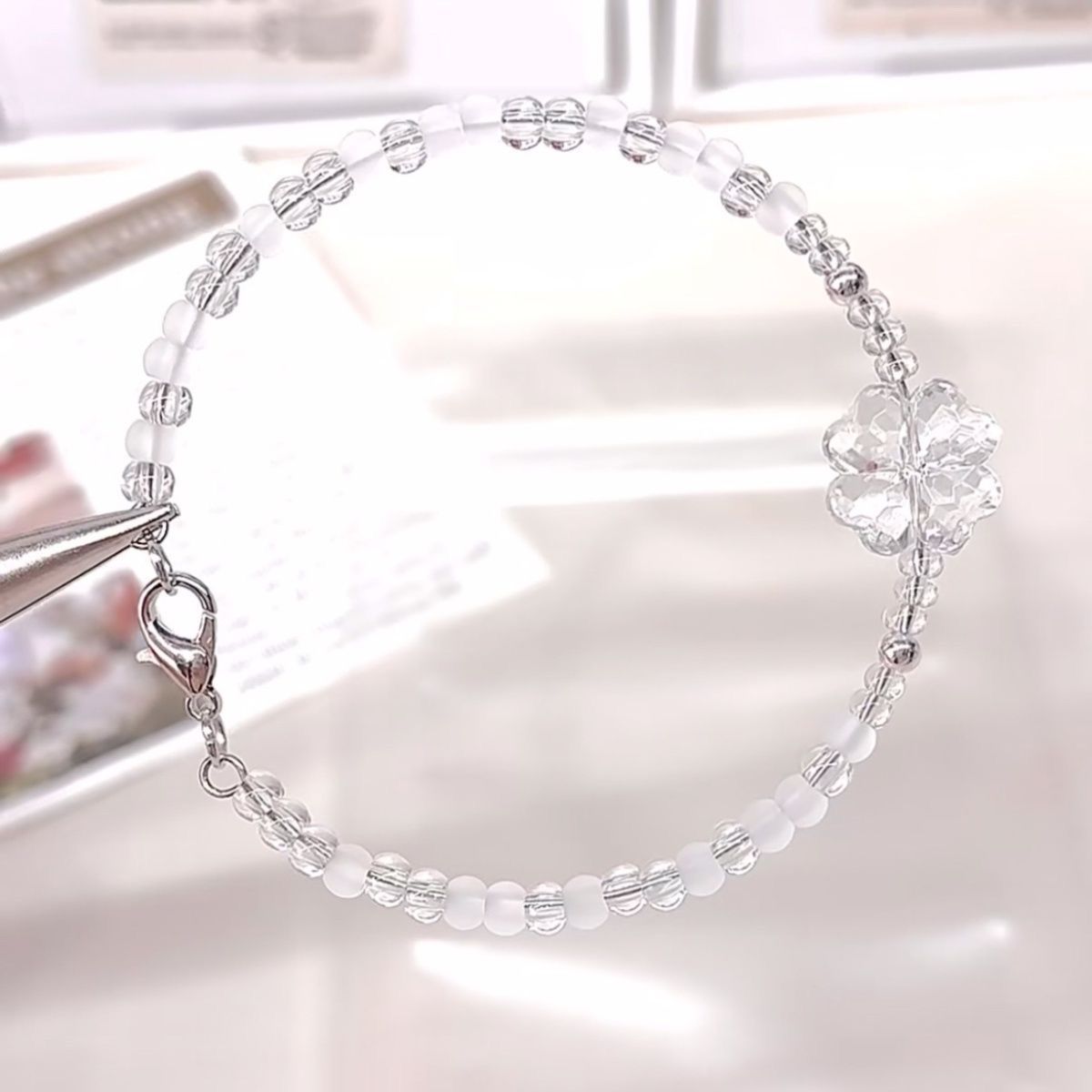 s190 четырехлистный клевер из бисера [белый]