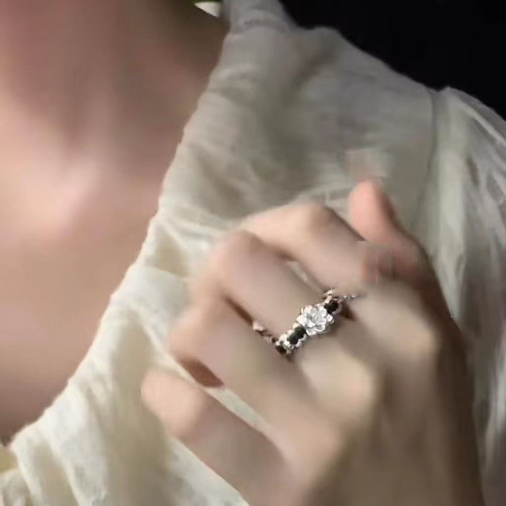 s136 плетеное кольцо с лотосом [черное]