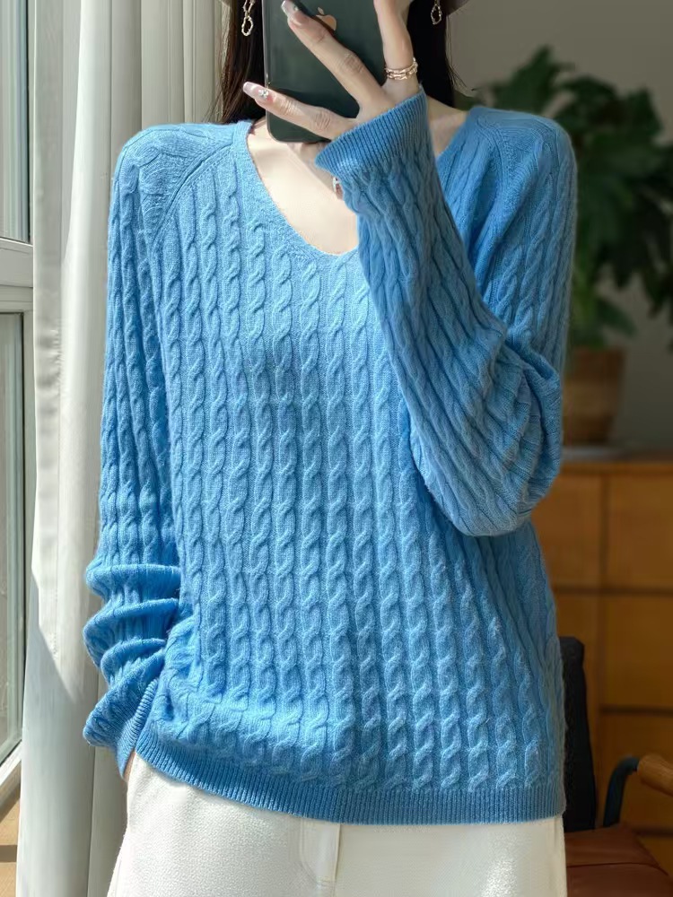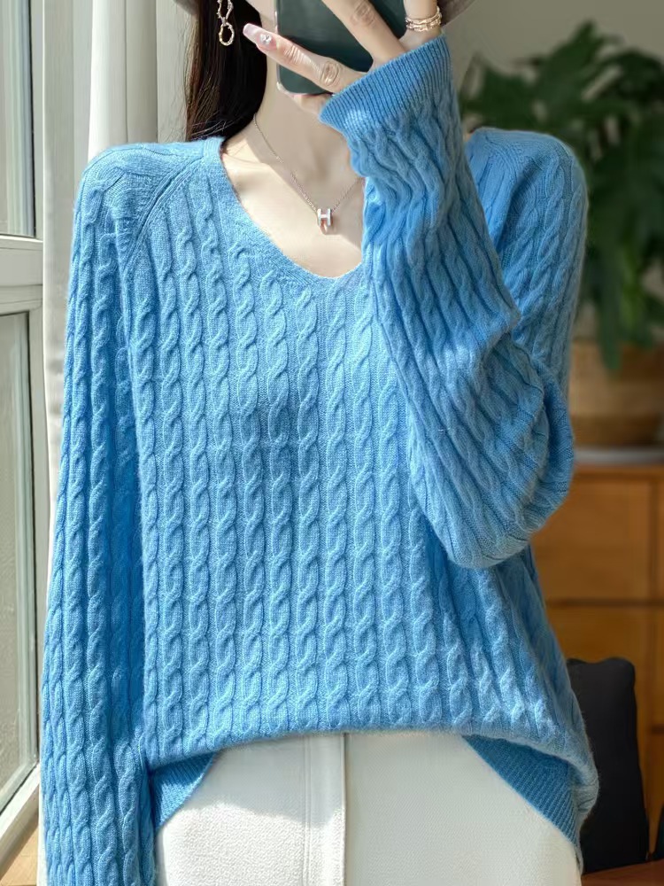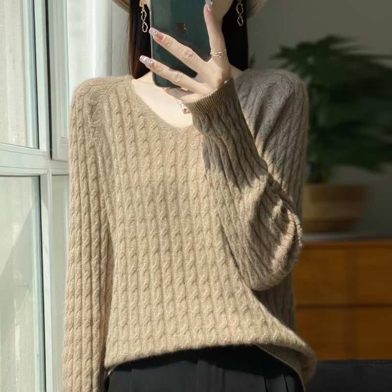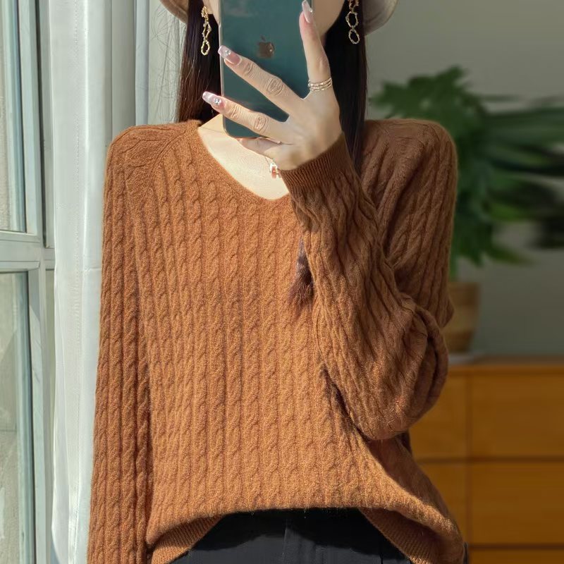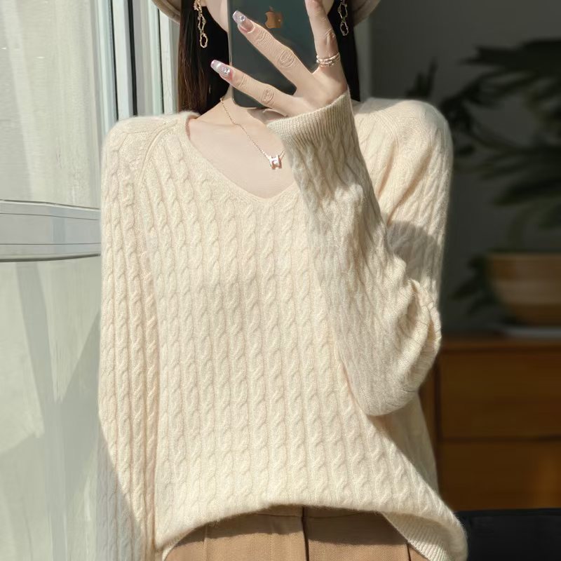 Главная страница > 100 шерстяной свитер женский новый трикотажный свитер с v-образным вырезом свитер ленивый свободный топ нижний рубашка носить осень-зима