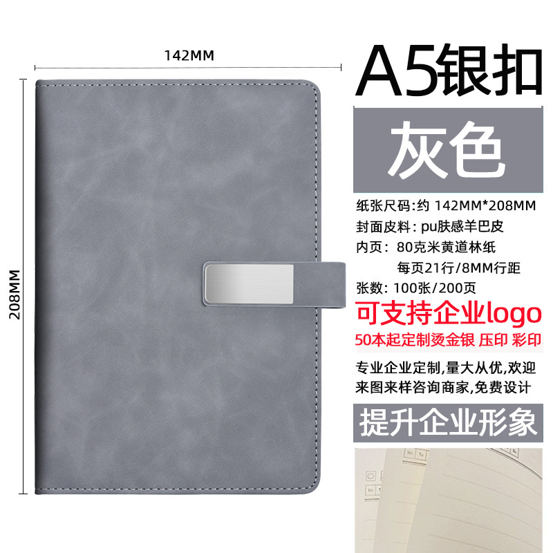 A5 овчина с эффектом кожи серого цвета [с серебряной пряжкой по краю]