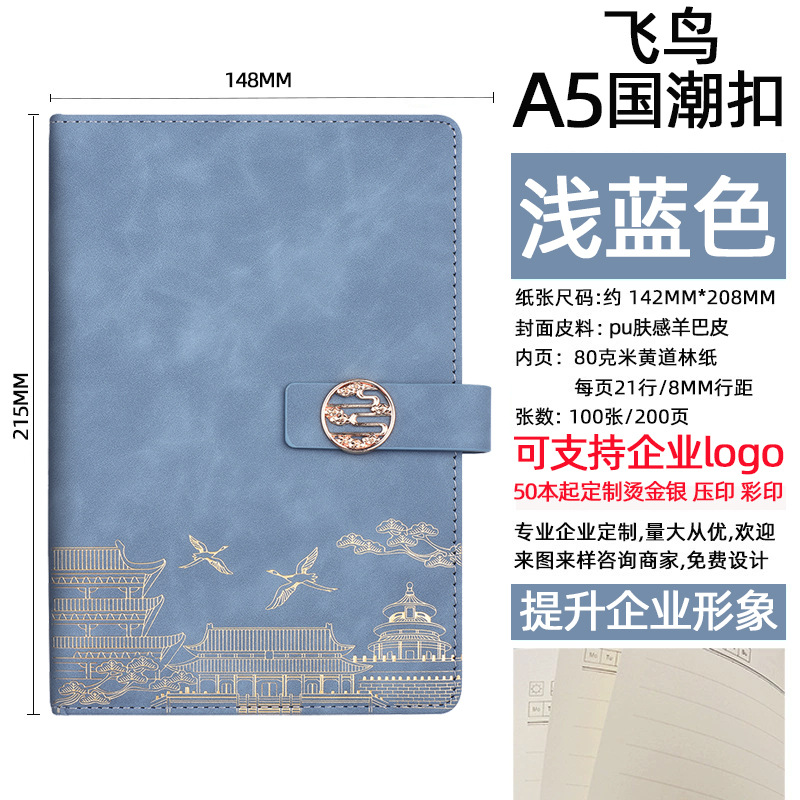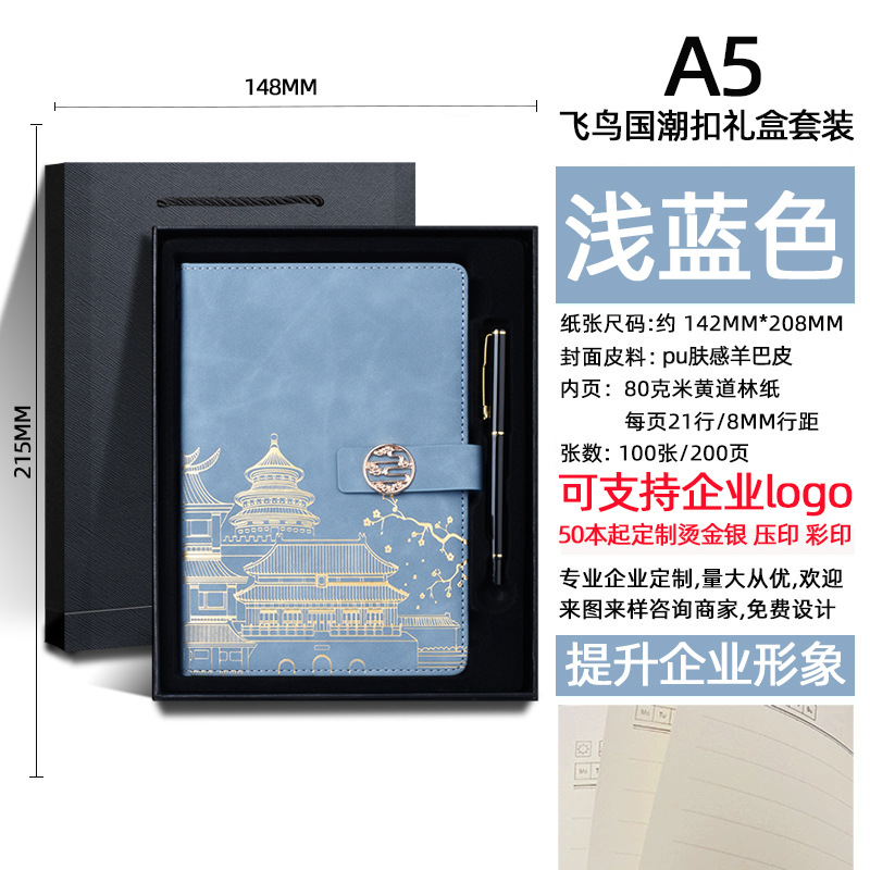 (Подарочный набор) А5 из овчины с эффектом кожи, светло-голубой [с китайской застежкой в стиле китайском]
