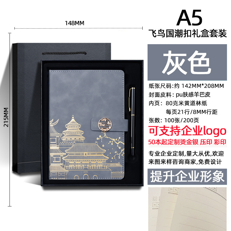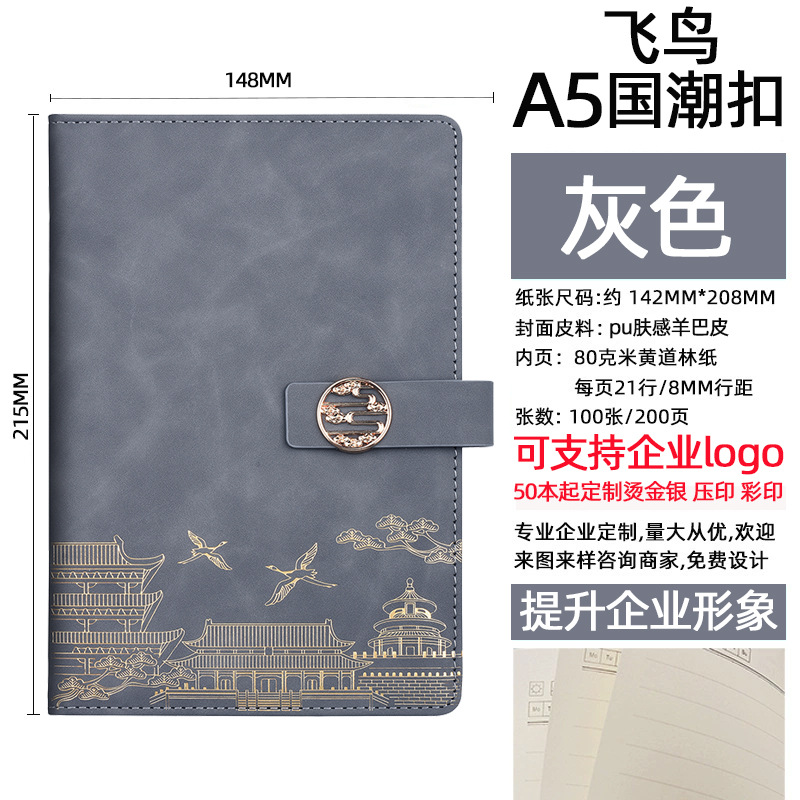 A5 овчина с ощущением кожи серого цвета [пряжка в форме птицы с национальным трендом]