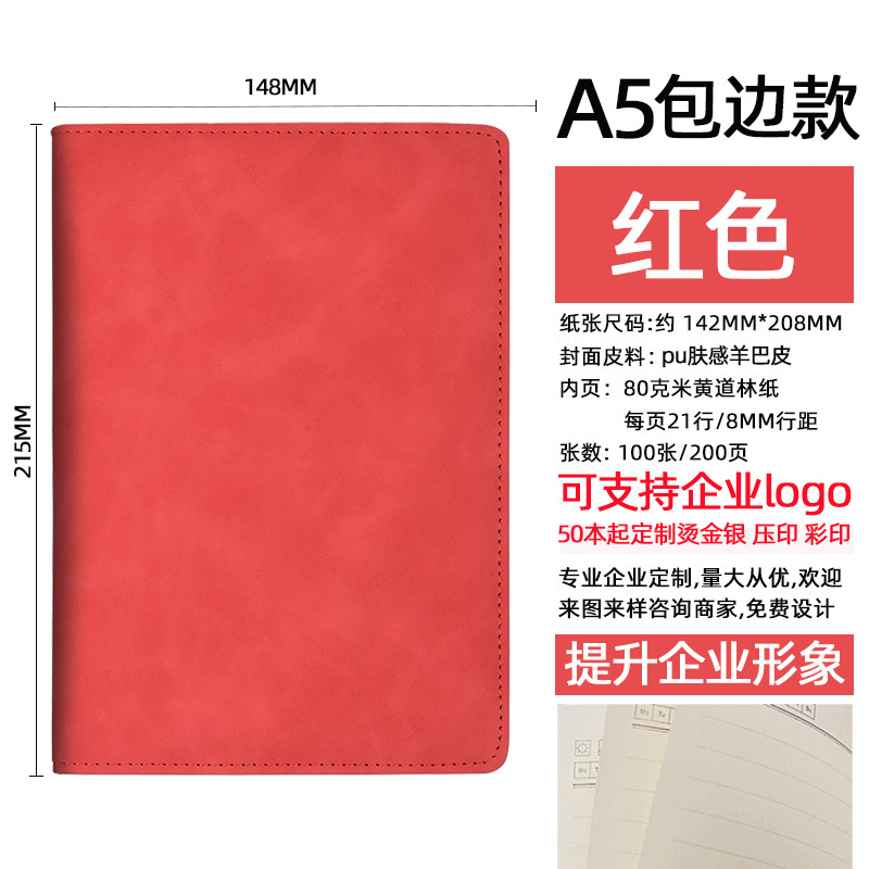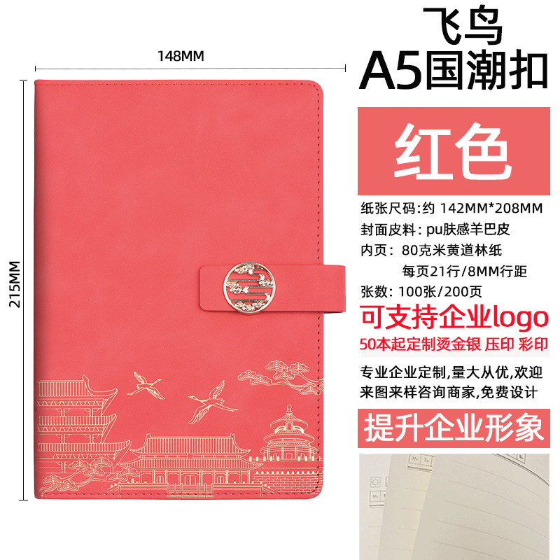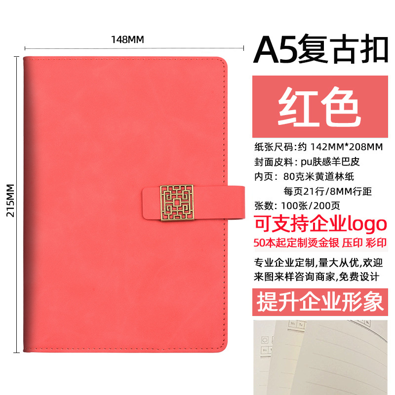 Кожа овчины формата A5, красная [китайская модная пряжка с краями]