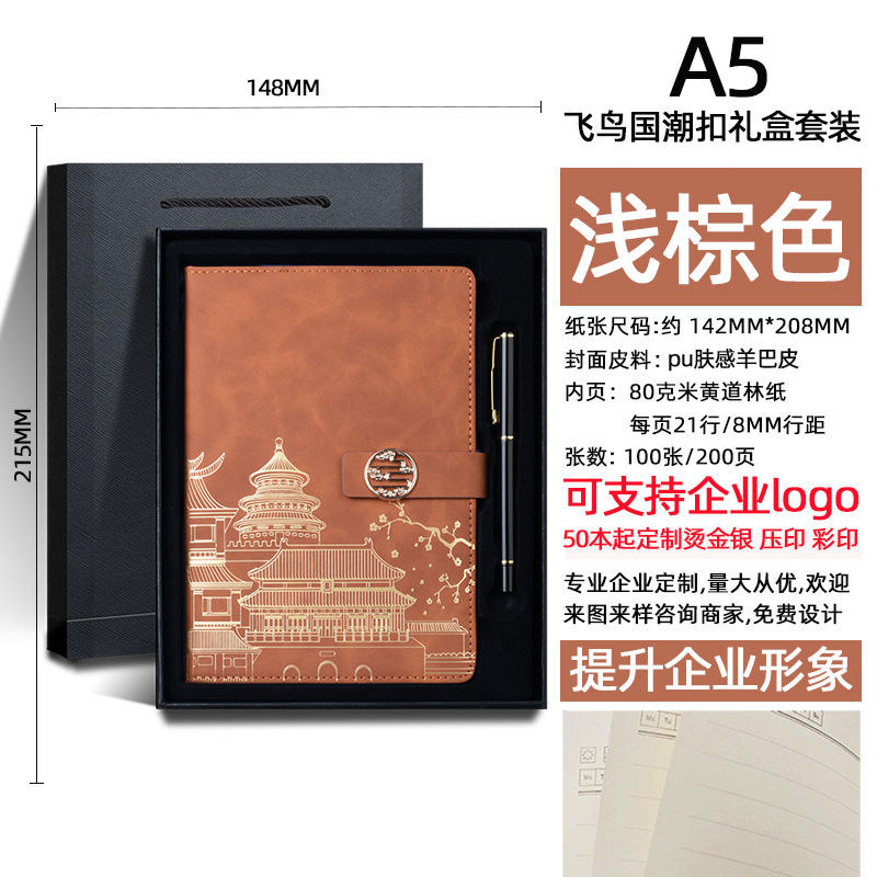 A5 овчина на ощупь светло-коричневая [национальная тенденция пряжки с птицей по краям]